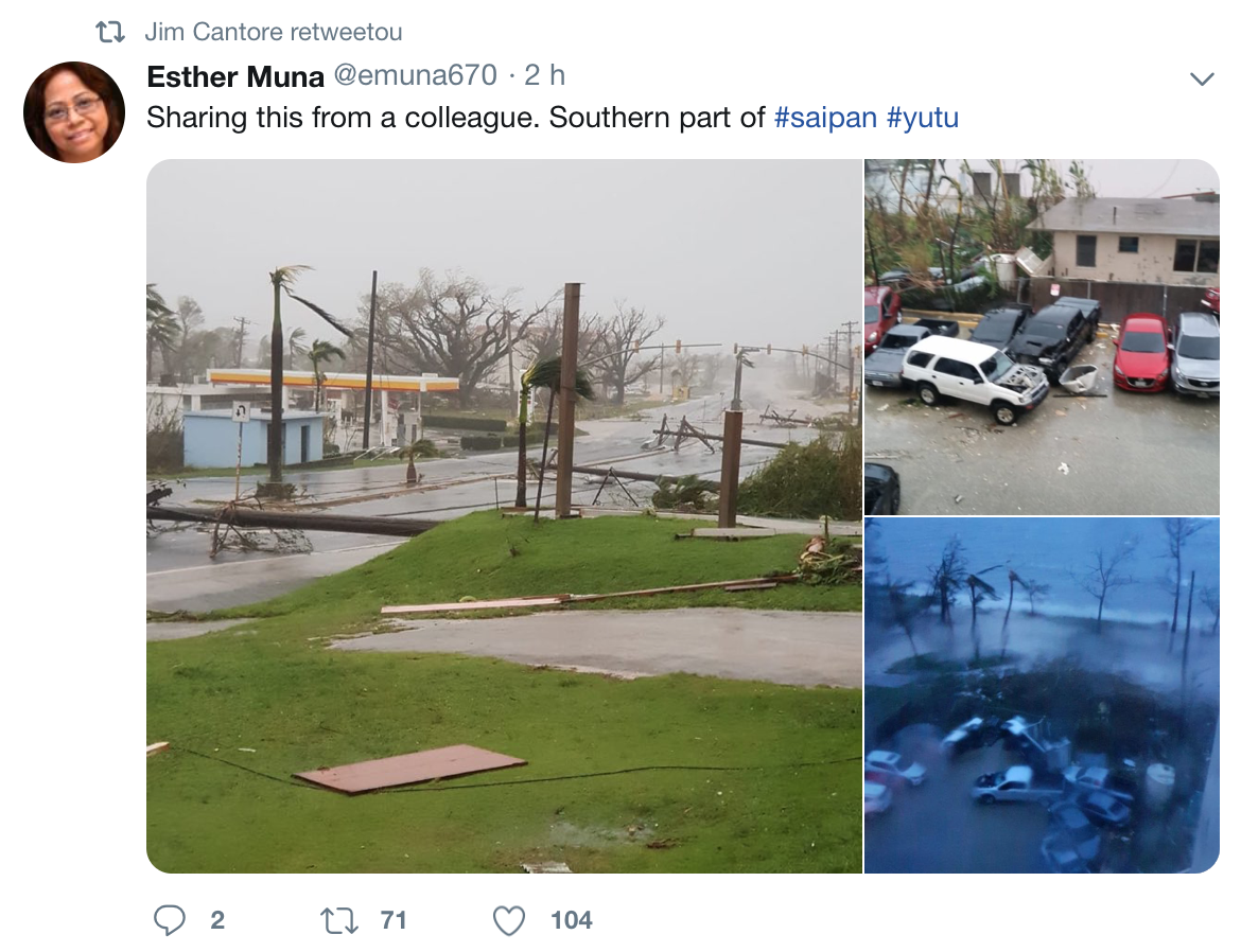 Yutu se tornou segundo ciclone mais forte a fazer landfall em território americano.