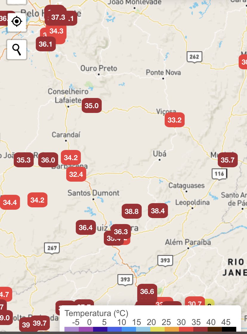 Enio Rezende Posted September 24, 2023 at 06:25 PM Share Posted September 24, 2023 at 06:25 PM Em 24/09/2023 em 01:29, LeoP disse: INMET de Ouro Branco é uma estação extremamente instável e fica fora do ar todos os dias, em algum horário Sim, aquilo lá tá uma b#st@ já mandei email pro INMET reclamando mas tá difícil. Hoje só reportou por enquanto os dados do meio-dia. As mínimas já tem tempo que eu venho citando as minhas. Hoje foi 18°. Já as máximas não consigo registrar pois meu termômetro fica na varanda, bate sol de manhã, trabalho fora e volto de tardezinha então sempre fica registrada uma máxima acima de 40° por causa do sol. Já hoje que eu tô em casa eu posso zerar ele depois do meio-dia e pegar uma máxima que geralmente bate com o INMET Ouro Branco e as PWS de Itaverava. É o caso de hoje que registrei máxima de 34,0° E vão surgindo essas nuvenzinhas...seria a tal saturação da atmosfera? Elas ao menos ajudam a tapar um pouco o sol. Agora, 15:25, meu termômetro marca 33,4° em Lafaiete. 14 Link to comment Share on other sites More sharing options...