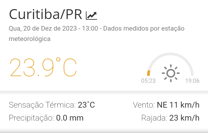 Marcos Posted December 21, 2023 at 01:31 AM Share Posted December 21, 2023 at 01:31 AM Máxima de 27,9° sem baixar dos 71%. Foi um dia abafado, mas salvo pelo tempo nublado e o vento E constante com rajadas. Já que não vai esfriar, que continue assim. Agora 23,3° com 86%. Segue o vídeo durante a tarde (queria gravar melhor o vento, mas não tive tempo). 10 Link to comment Share on other sites More sharing options...