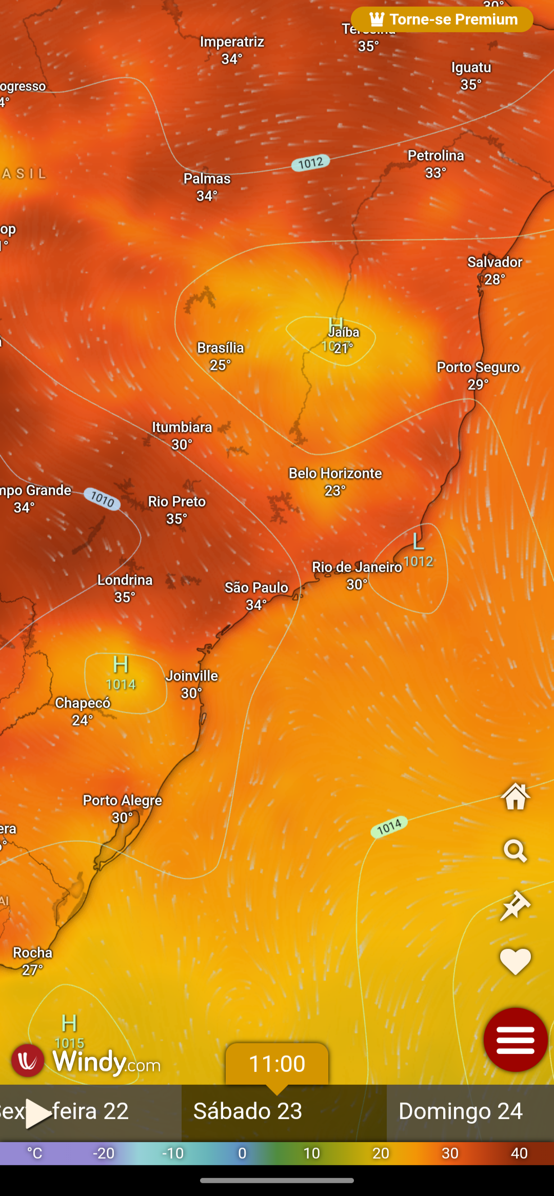 Eclipse POA Posted December 22, 2023 at 02:25 AM Share Posted December 22, 2023 at 02:25 AM Não estou em Canoas, mas os dados da base aérea indicam um dia horroroso que teve variação de 22,3 / 33,4 °C. Que época medonha. Em Capão da Canoa, pelo que vi, não passou de 27 graus à tarde. Brisas frescas de manhã e ao anoitecer, lembrando um dia de começo de novembro da RMPOA. 5 3 Link to comment Share on other sites More sharing options...