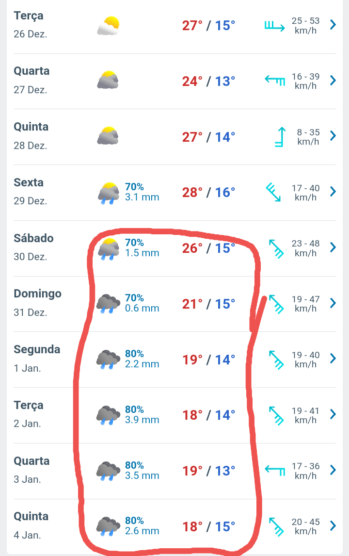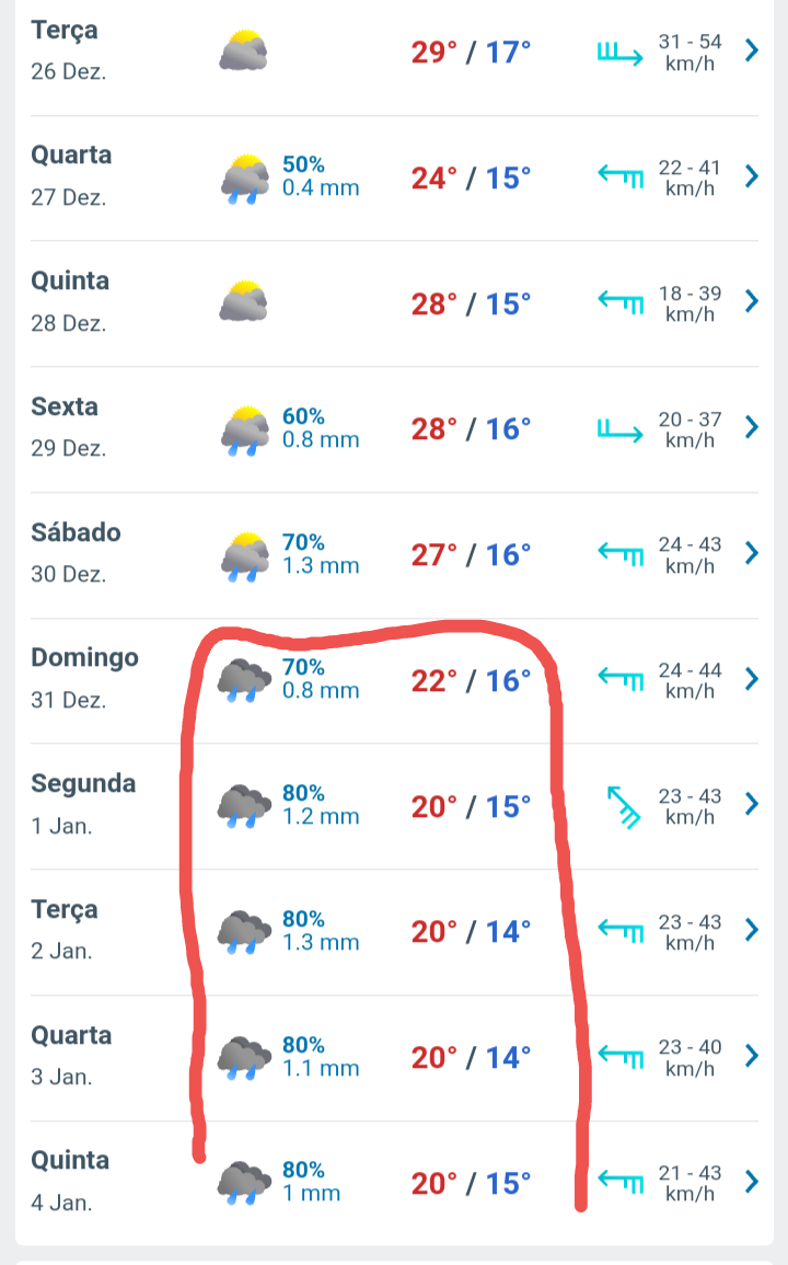 Edison Bocorny Jr Posted December 22, 2023 at 10:44 AM Share Posted December 22, 2023 at 10:44 AM Em 21/12/2023 em 23:25, Eclipse POA disse: Não estou em Canoas, mas os dados da base aérea indicam um dia horroroso que teve variação de 22,3 / 33,4 °C. Que época medonha. Em Capão da Canoa, pelo que vi, não passou de 27 graus à tarde. Brisas frescas de manhã e ao anoitecer, lembrando um dia de começo de novembro da RMPOA. Estou indo para aí amanhã e retorno terça de manhã. 4 1 Link to comment Share on other sites More sharing options...