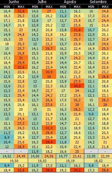 Gabriel Nogeira Posted August 11, 2024 at 05:10 PM Author Share Posted August 11, 2024 at 05:10 PM Alguém se tiver dados das menores temperaturas máximas do Rio de Janeiro desde dos anos 1970 por favor eu gostaria de saber a sequência de vezes que o Rio teve temperaturas máximas abaixo de 20 graus, se tiver algum meterologista com essa informação melhor ainda por favor gente? 1 Quote Link to comment Share on other sites More sharing options...