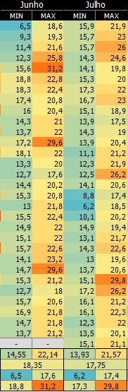 Leandro A M Leite Posted July 31, 2024 at 08:42 PM Share Posted July 31, 2024 at 08:42 PM (edited) Junho de 1996, nunca fizeram um tópico a respeito dessa onda de frio, mas tivemos valores demasiadamente baixos no período da tarde em Goiás e Mato Grosso, são esses os valores às 18 h UTC em 28/06/96: Jataí/GO 7,8ºC Diamantino/MT 9,2ºC Pe. Ricardo Remetter/MT 9,4ºC Paranaíba/MS 9,4ºC Rondonópolis/MT 9,7ºC Cuiabá/MT 9,8ºC Aragarças/GO 15,6ºC Nova Xavantina/MT 15,8ºC Acredito que Primavera do Leste estivesse com uma temperatura semelhante à de Jataí, o Ventusky coloca 9ºC em ambas, então, Primavera certamente estava com cerca de 8ºC no período da tarde. No dia 29 de junho os destaques às 18 h UTC foram: Franca/SP 8,8ºC São Simão/SP 11,4ºC Araxá/MG 11,6ºC Ipameri/GO 13,1ºC Catalão/GO 13,2ºC Goiânia/GO 13,8ºC Edited September 18, 2024 at 02:11 PM by Leandro A M Leite 4 2 Quote Link to comment Share on other sites More sharing options...