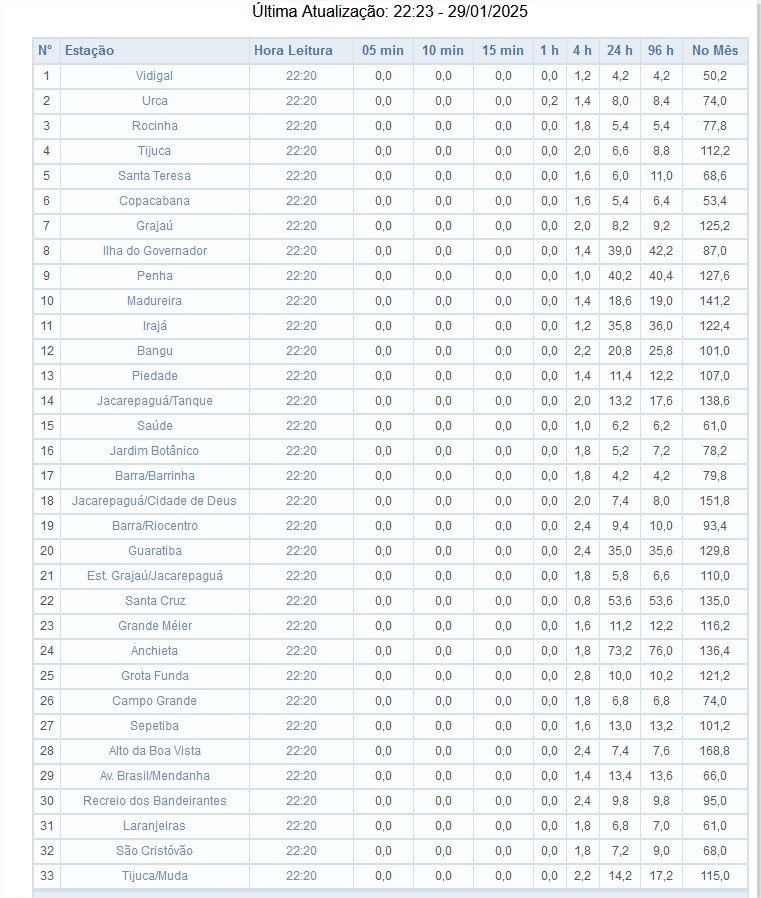 Rafael Rezende de loyola Posted January 30, 2025 at 08:29 PM Share Posted January 30, 2025 at 08:29 PM Em 28/01/2025 em 12:32, Darley disse: Atualizando a lista de capitais com chuva acima da média em janeiro de 2025: Manaus Florianópolis (EPAGRI) Vitória (aut) Goiânia Brasília Boa Vista Palmas São Luís Fortaleza Natal João Pessoa Aracaju São Paulo Mirante tá quase, pode entrar nessa lista já amanhã. O Mirante acumulou 214mm desde a tarde da segunda-feira da semana passada. Um acumulado desses em apenas 1 semana no Mirante pode aumentar o nível do Rio Tietê. é esquisito como aqui em Curitiba muitas estações PWS já passaram da média bonito... mas a INMET não. Sempre assim. 4 Link to comment Share on other sites More sharing options...