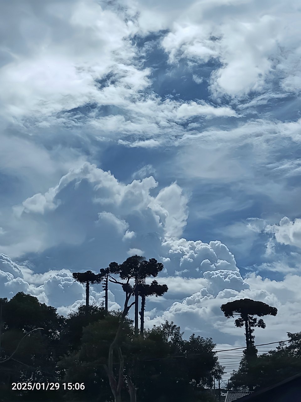 Rafael Rezende de loyola Posted January 30, 2025 at 08:33 PM Share Posted January 30, 2025 at 08:33 PM Em 29/01/2025 em 08:47, Carlos Campos disse: Bom dia... Variação ontem 18,1°C e 27,2°C Tem chovido praticamente todos os dias aqui no leste paranaense, porém em pontos isolados. Algumas vezes os acumulados são elevados em determinados locais, como por exemplo ontem, em q choveu 90mm na região do bairro Atuba, quase divisa Curitiba/Pinhais. Em Pinhais foram 65mm acumulados em pouco tempo durante a tarde. Ocorreram aqui na vila descargas atmosféricas muito fortes, com queda de raios e também chuva forte sem ventania. Em casa, 27mm. Vista Noroeste ontem de tarde. eu ia te citar. Lembro que no começo/meio do mês você estava chateado que o padrão estava com pouca chuva de verão assim e estava fresco, abaixo da média. Pois bem, desde lá o padrão mudou. Tem chovido quase todos os dias e teve poucos dias de calor excessivo, acima de 30 graus. No geral, não foi um mês ruim. Se o Matheus Vinicius estivesse aqui, ele iria reclamar do calor, mesmo o mês sendo bem comportado como foi 6 1 Link to comment Share on other sites More sharing options...