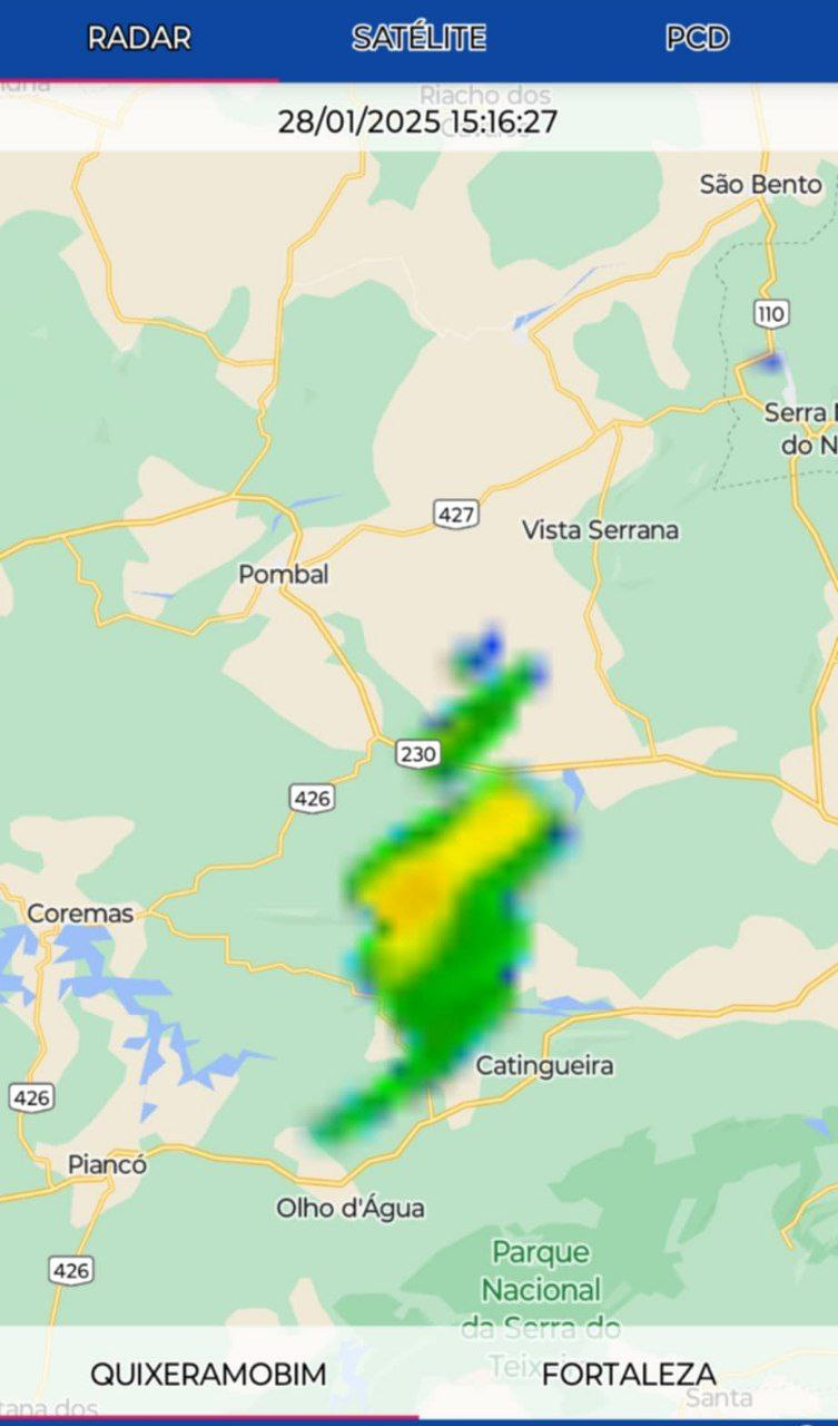 CloudCb Posted January 29, 2025 at 01:39 PM Share Posted January 29, 2025 at 01:39 PM Ontem no meio da tarde se desenvolveu uma instabilidade isolada a sul/sudeste de Pombal. Rafael Santos Radar da FUNCEME. Essa chuva não atingiu Pombal, mas eu ouvi vários trovões dela. Não houve grandes volumes acumulados (Emas registrou 17,7 mm e Catingueira 16 mm). 9 Link to comment Share on other sites More sharing options...