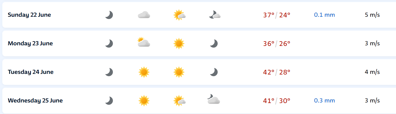 Leandro A M Leite Posted June 10, 2025 at 01:56 AM Author Share Posted June 10, 2025 at 01:56 AM 45ºC previstos para Phoenix no próximo domingo:https://www.wunderground.com/forecast/KPHX 1 1 Quote Link to comment Share on other sites More sharing options...