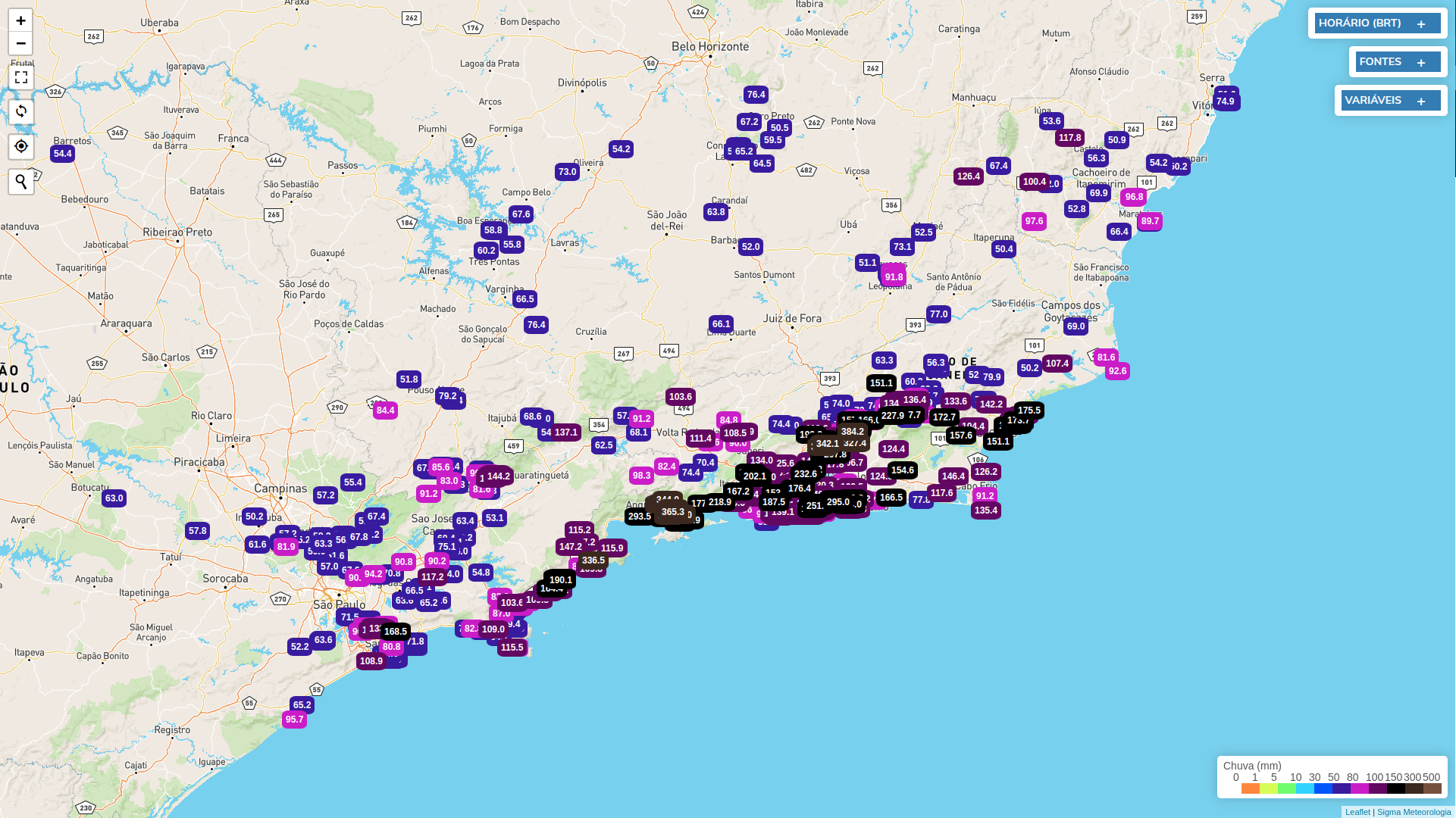 Gabriel Cassol Posted April 6, 2025 at 03:10 PM Share Posted April 6, 2025 at 03:10 PM (edited) 🚨 Acumulados dos últimos dias ultrapassam os 300 mm em vários pontos do litoral e região serrana do Rio de Janeiro. https://sigmameteorologia.com/sigmaweb/stations.php Edited April 6, 2025 at 03:11 PM by Gabriel Cassol 10 1 1 1 Link to comment Share on other sites More sharing options...