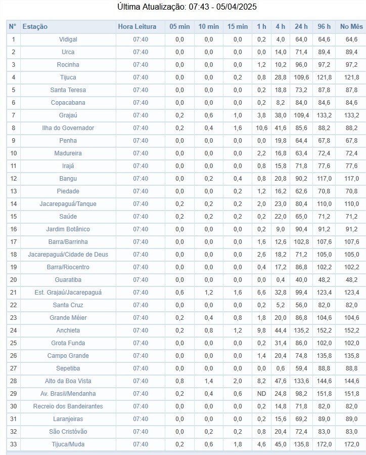 pauloribrj Posted April 5, 2025 at 06:58 PM Share Posted April 5, 2025 at 06:58 PM Chuva já passa dos 300mm em Petrópolis. A chuva se intensificou na parte da manhã e o acumulado já passa dos 300m/24h na cidade na região do Alto da Serra e Independência de acordo com o CEMADEN. Aqui na cidade do Rio a chuva voltou a ficar forte também na parte da manhã principalmente no entorno do Maciço da Tijuca e o acumulado em 24h já passa dos 200mm na região. 5 9 Link to comment Share on other sites More sharing options...