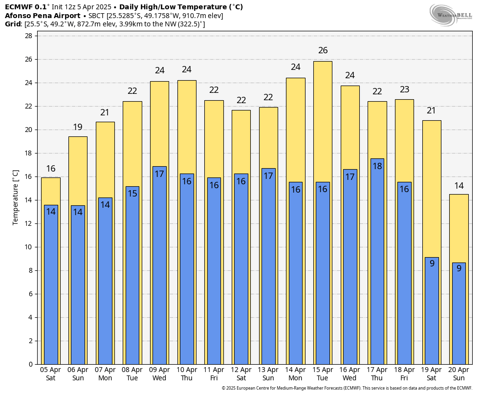 Renan Posted April 6, 2025 at 01:43 PM Share Posted April 6, 2025 at 01:43 PM Em 06/04/2025 em 09:27, Rodrigo-GO disse: Modelos prevendo 2 boas incursões depois do dia 20 de abril. Se confirmar essas incursões as previsões de alguns modelos vão passar muita vergonha. Então ficaremos num hiato de mais ou menos uns 10/12 dias sem MPs? Pelo menos as temperaturas não vão disparar mais, ficarão bem dentro do esperado para Abril. Friozinho outonal deu as caras. Os topos tiveram as menores mínimas do ano, já as baixadas não renovaram as menores mínimas. O menor valor em Juiz de Fora foi de 14,8°C no topo do Alphaville, superando até o INMET que parou em 15,3°C. Já em Ibitipoca (parque), a temperatura baixou para 11,0°C e com rajadas de até 33Km/h. Foi uma madrugada bem fria por lá. 15 Link to comment Share on other sites More sharing options...