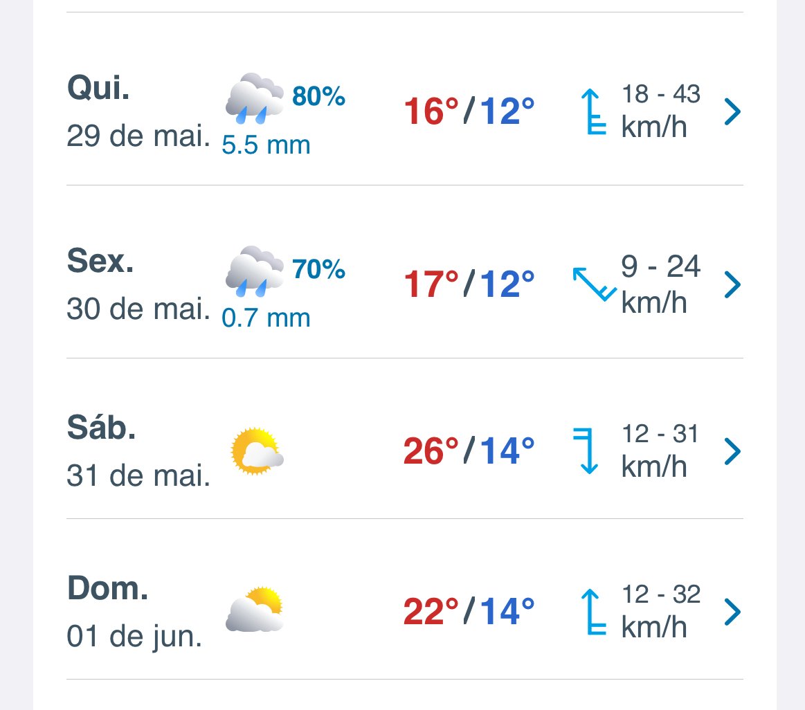 Carlos Campos Posted May 23, 2025 at 02:26 PM Share Posted May 23, 2025 at 02:26 PM Em 23/05/2025 em 11:06, Matheus Vinicius disse: A pergunta foi porque 21/11 e 13/2 pra Curitiba > São Bento do Sul num mesmo dia é meio peculiar Já que são cidades com temperaturas próximas, apesar de São Bento ser mais frio em média sempre Ah, tá... Entendi (vc também não ajuda... poderia ao menos ter escrito um texto maior, dizendo isso que disse agora). Então, é isso mesmo... Lá é outra realidade algumas vezes. E São Bento é mais milagreiro do que Nossa Senhora da Luz. 3 10 Link to comment Share on other sites More sharing options...