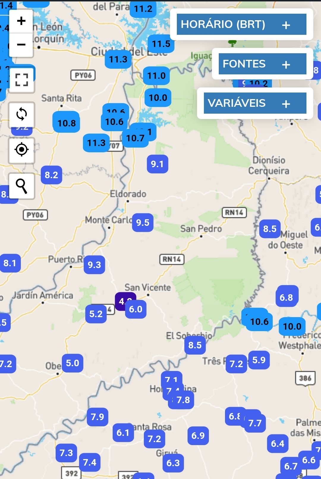 Leandro A M Leite Posted May 28, 2025 at 09:40 PM Share Posted May 28, 2025 at 09:40 PM O ar mais gelado se encontra no sudoeste do Mato Grosso com 10,4ºC às 4:30 da tarde na Fazenda União em Tangará da Serra, Padaria do Moinho em Cuiabá registra agora 15,6ºC às 5:30 da tarde, mas em Primavera do Leste o ar mais frio ainda está encontrando resistência com pouco mais de 18ºC em suas PWSs urbanas. 15 Link to comment Share on other sites More sharing options...