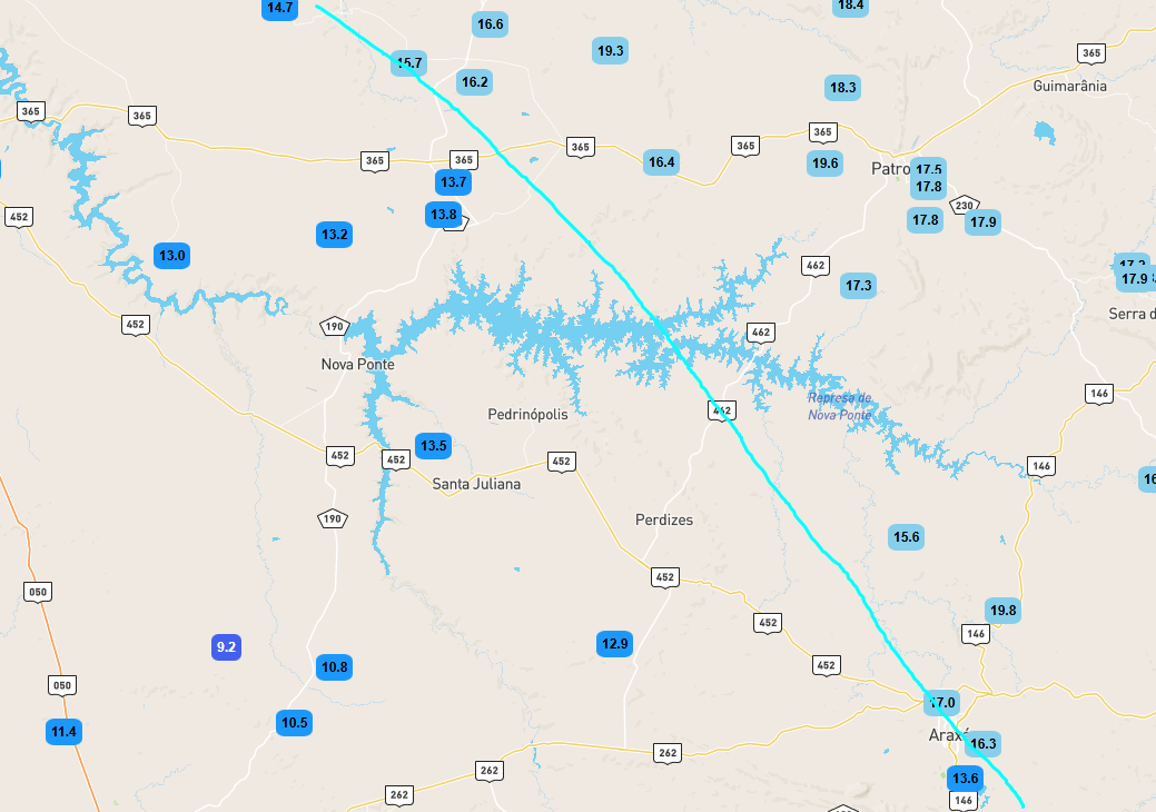Felipe F Posted May 29, 2025 at 01:39 PM Share Posted May 29, 2025 at 01:39 PM Assim como sempre acontece, o ar frio está com dificuldade de chegar em Patrocínio. Acredito que até 12h pode chegar por lá. Uberlândia e Uberaba devem ter as menores máximas do ano e possivelmente uma tarde abaixo de 15ºC. No momento 12ºC em Uberlândia e 11ºC em Uberaba. 16 2 Link to comment Share on other sites More sharing options...
