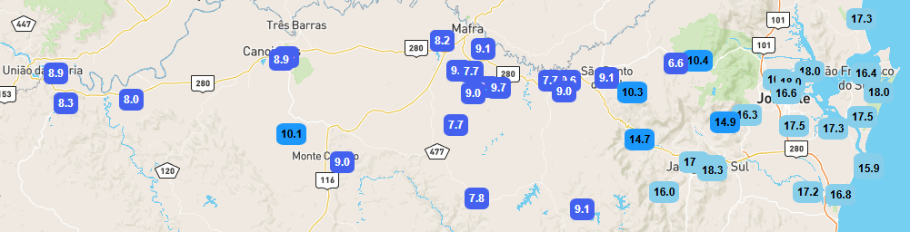 jean10lj Posted May 29, 2025 at 02:12 PM Share Posted May 29, 2025 at 02:12 PM Em 29/05/2025 em 09:57, Leonardo disse: Bom dia Jean! Pior que o sol apareceu entre 8h e 9h, talvez o dado esteja correto. Agora fechou novamente, vamos ver Bah, acho muito difícil estar correto. Só a estação do Inmet em Chapecó disparou a temperatura, na estação da UFFS tudo normal. Acho que fizeram alguma coisa na estação E essa discrepância jamais ocorreu com as outras estações, lugares a menos de 300m de altitude com 8 graus. Que também tiveram sol. 16 2 Link to comment Share on other sites More sharing options...