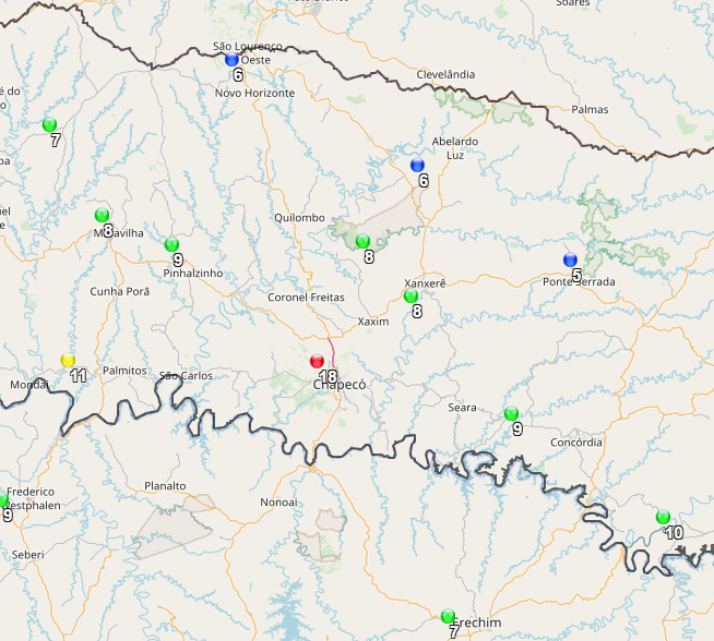 Leandro A M Leite Posted May 29, 2025 at 07:38 PM Share Posted May 29, 2025 at 07:38 PM Valores muito baixos nessa tarde também em Goiás, algo que não se vê todos os anos: Rio Verde-Fazenda Pai Manoel (849 m) 11,5ºC 15:42h Rio Verde-MRE Agropecuária (761 m) 11,7ºC 15:48h Jataí-Fazenda Vitória (882 m) 11,7ºC 15:48 h 15 Link to comment Share on other sites More sharing options...