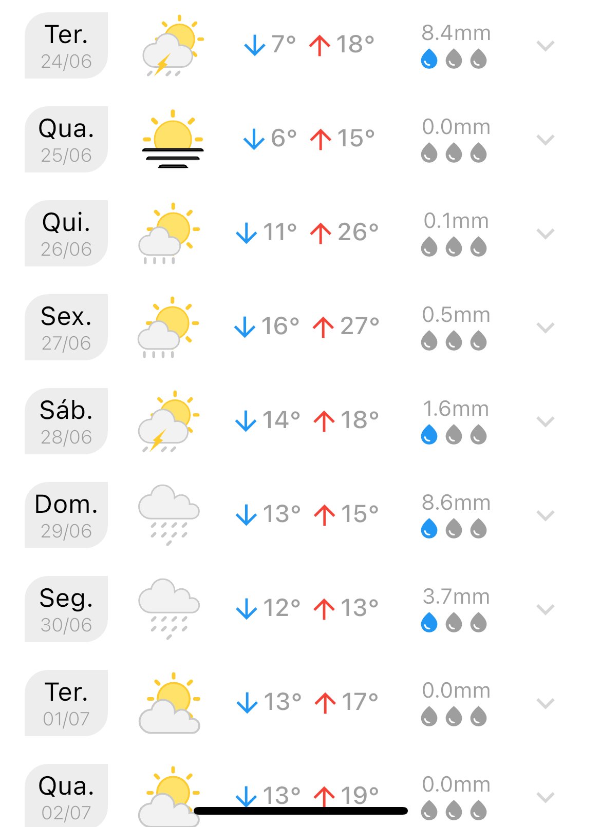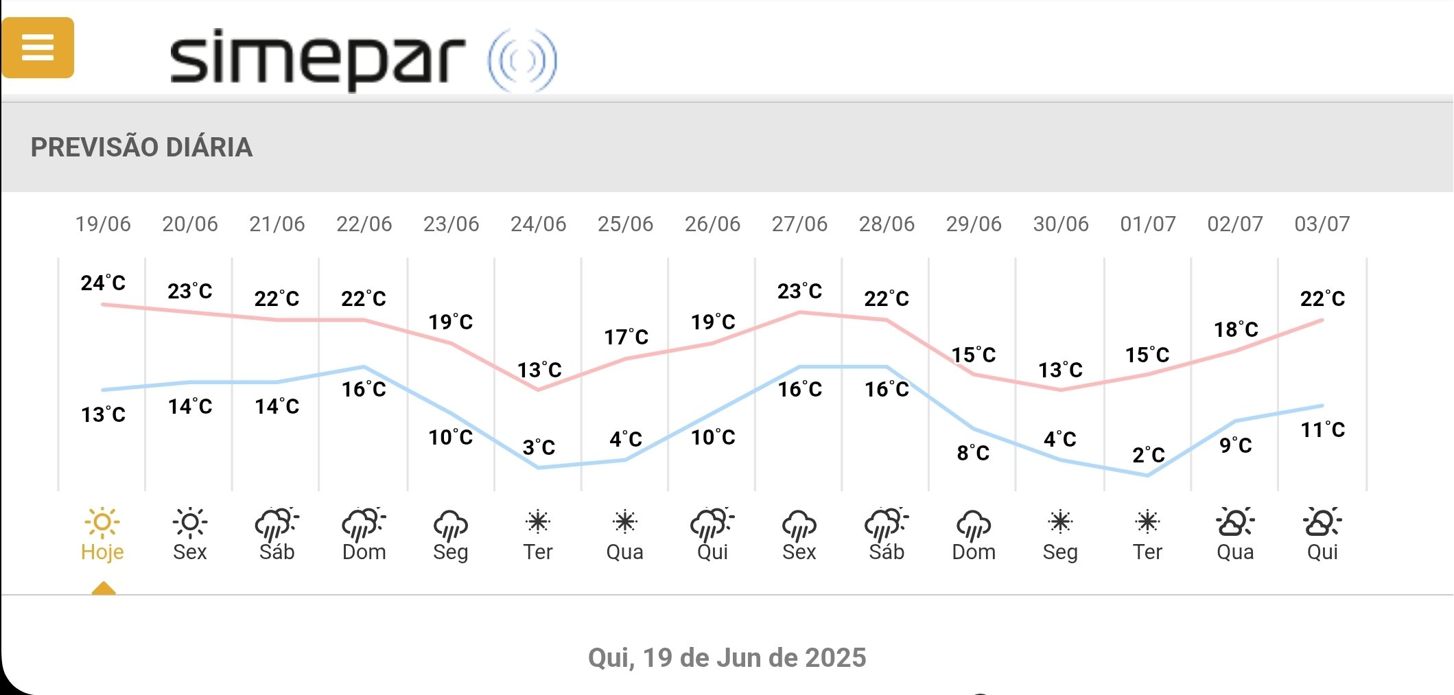 Luide Luckmann Posted June 19, 2025 at 07:04 PM Share Posted June 19, 2025 at 07:04 PM Mínimas na terça e quarta pelo CMC aqui em SC: 13 2 12 Link to comment Share on other sites More sharing options...