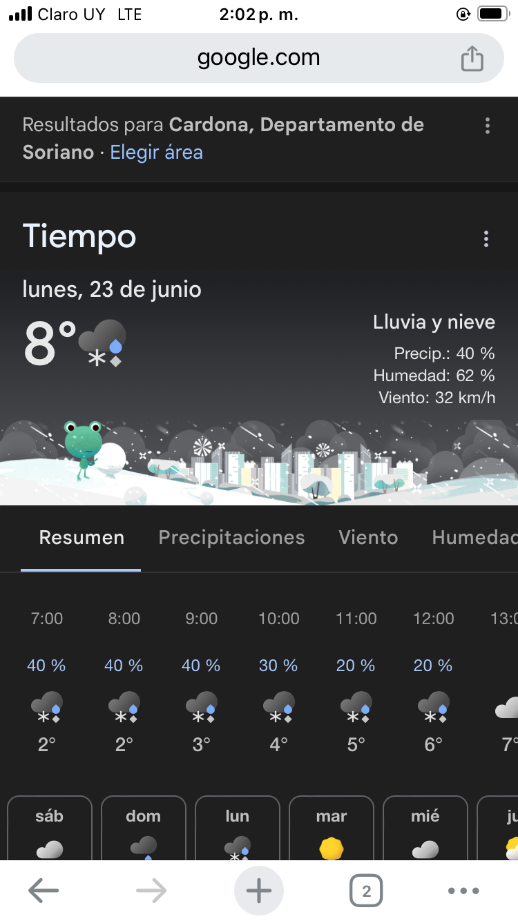 Fernando Keiser Posted June 19, 2025 at 09:50 PM Share Posted June 19, 2025 at 09:50 PM Em 19/06/2025 em 18:43, Serrano disse: Aqui chove fraco desde a noite de ontem, e de forma ininterrupta ao longo do dia. Máxima de 12,4°C na tarde de hoje em Urubici/VG. Frio e nublado. Meteoloko caprichou na última saída: Gelo e gelo! Ótimas mínimas e algumas boas máximas também. -10 VINDO À GALOPE! 9 4 2 Link to comment Share on other sites More sharing options...