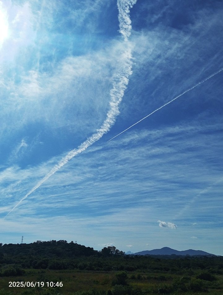 Carlos Campos Posted June 19, 2025 at 09:22 PM Share Posted June 19, 2025 at 09:22 PM Hoje teve muitas contrails no céu, depois das 10h da manhã. Altocumulus, mais cedo - 17 1 Link to comment Share on other sites More sharing options...