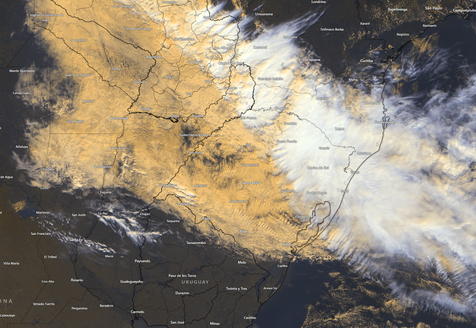 Gabriel Cardoso Posted June 19, 2025 at 08:20 PM Share Posted June 19, 2025 at 08:20 PM Enquanto as belas MP's previstas não chegam...por aqui mais um dia nublado com variação de 13,3°C a 16,6°C. Mas, diferente de ontem, hoje não choveu. Como comentei anteriormente, a Massa polar bloqueou no Uruguai, mais precisamente na fronteira, tendo em vista que Jaguarão (130km à SO em linha reta daqui) teve mínima de 5°C na estação do INMET. A belezinha atual bloqueada: 20 Link to comment Share on other sites More sharing options...