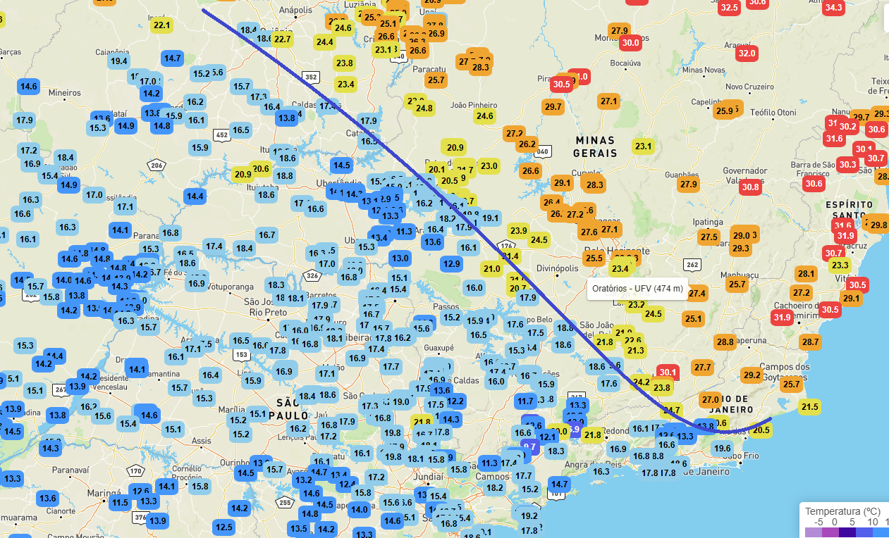 Leandro A M Leite Posted June 24, 2025 at 07:01 PM Share Posted June 24, 2025 at 07:01 PM Esse ano está mais favorável a frio diurno em Goiás, na fazenda Barreiro no município de Paraúna faz 14,8ºC às 14:54, a fazenda fica a quase 900 metros de altitude, e em linha reta não dista mais que 100 km da fazenda que era do meu avô juntamente com a de um tio meu no município de Piranhas, onde tal frio de tarde chega a ser impensável. 20 Link to comment Share on other sites More sharing options...