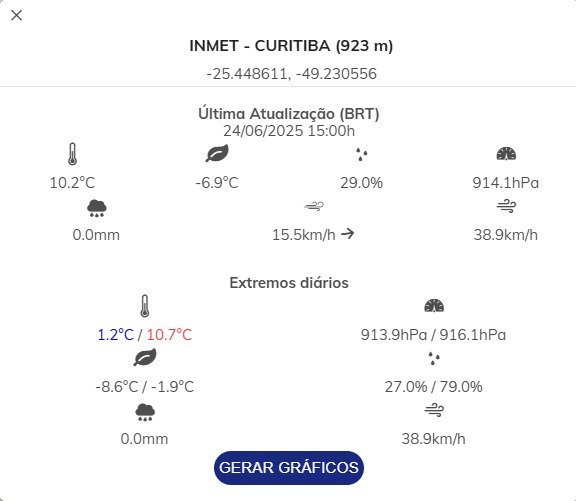 Carlos Campos Posted June 24, 2025 at 07:01 PM Share Posted June 24, 2025 at 07:01 PM Em 24/06/2025 em 15:52, Gabriel Cassol disse: INMET de São Joaquim também está perdendo dados, está com problema de bateria e por isso perdeu todos os dados da madrugada e amanhecer. No entanto, dentro do cercado do INMET de São Joaquim tem uma estação automática da EPAGRI que registrou hoje -6.0ºC. Essa é a menor temperatura desse local desde 11/07/2004 em São Joaquim. É a advecção mais forte em pelo menos 21 anos. Não é um frio qualquer, é histórico! Uma perguntinha... o Cindacta II não monitora temperaturas no MI? 14 Link to comment Share on other sites More sharing options...