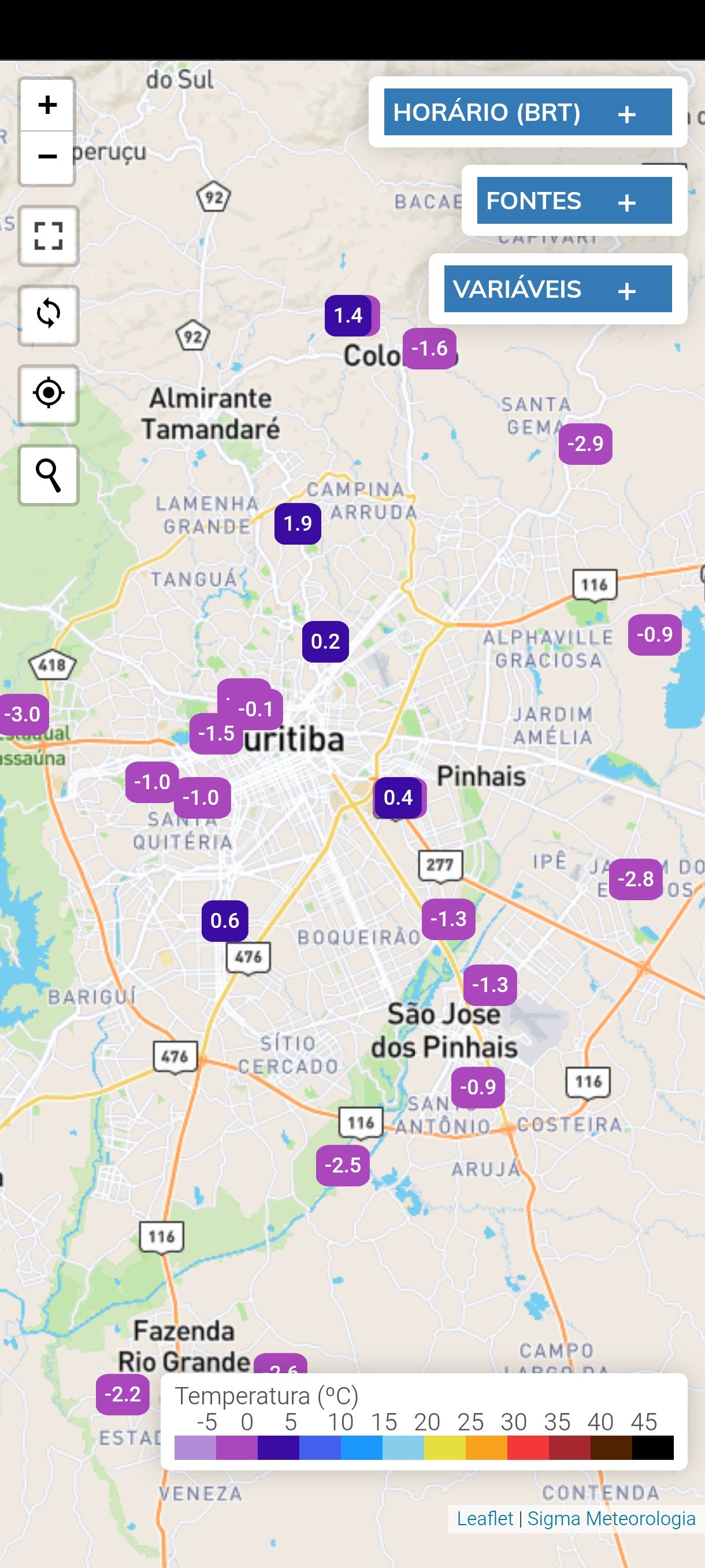 SandroAlex Posted June 25, 2025 at 02:23 AM Share Posted June 25, 2025 at 02:23 AM Mínima do dia renovada as 23h10: -0,3°C. Primeira negativa do ano em SBS. 17 6 Link to comment Share on other sites More sharing options...
