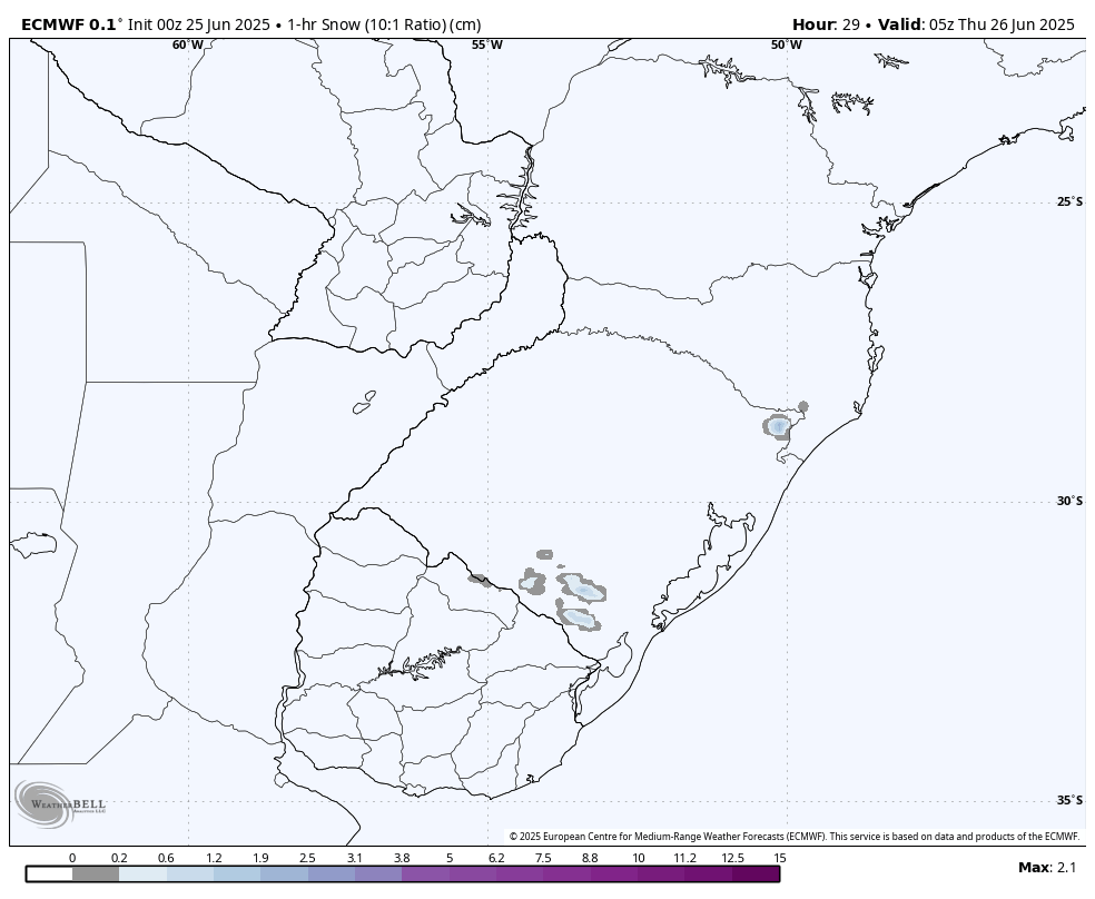 Serrano Posted June 25, 2025 at 09:34 AM Share Posted June 25, 2025 at 09:34 AM (edited) Em 25/06/2025 em 06:11, RamirezFZ disse: Curitiba quase toda negativa, geada severa, a estação marcando 1.9c deve estar fumada, está mais quente q o inmet no centro urbano rs Lindo ver Curitiba assim de novo! Madrugada excelente com queda constante. Estações próximas entre -4 e -8°C. Europeu tomou os remédios e corrigiu a rota: Edited June 25, 2025 at 09:36 AM by Serrano 17 6 Link to comment Share on other sites More sharing options...