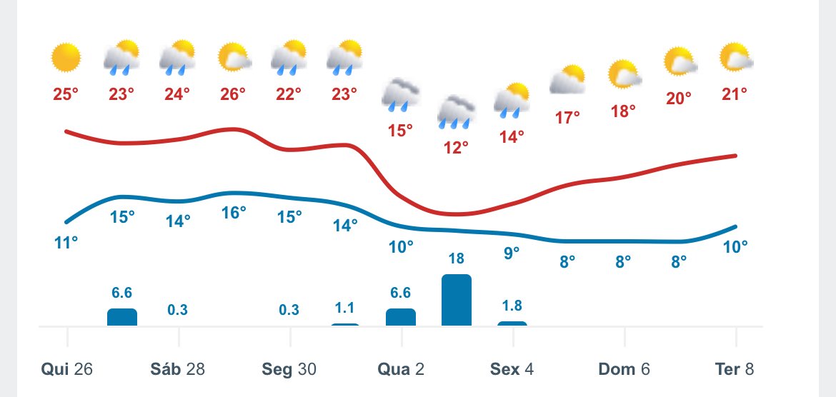 Carlos Campos Posted June 26, 2025 at 01:23 PM Share Posted June 26, 2025 at 01:23 PM Em 26/06/2025 em 10:17, Eclipse POA disse: hj em dia pra mim uma variação de 15 a 23 tá de boas 🥰 Oh oh.. Então recomendo não olhar pro gráfico de Canoas, abaixo... Vou ignorar o daqui, também. 4 13 Link to comment Share on other sites More sharing options...