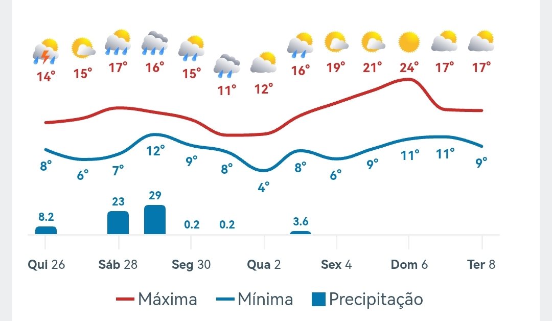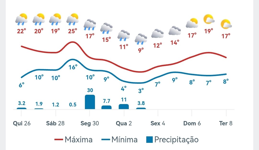 Serrano Posted June 26, 2025 at 10:42 AM Share Posted June 26, 2025 at 10:42 AM (edited) E tivemos chuva sobre a geada, isto ocorreu também no ano passado - porém foi pela manhã. No momento 6,8°C, pancada leve agora há pouco. A previsão está com uma longa sequência de máximas baixas, algumas mínimas também. O quadro é bom e destaco a ausência de aquecimento no período. T Média 01-26/06 São Joaquim/Epagri 8,9°C (-0,9°C) Lages INMET 11,1°C (-0,5°C) A última vez que São Joaquim/INMET alcançou 20°C foi em 19/05 (20,3°C). Em Urubici/VG (fundo de vale) teve um único registro de 20°C cravados entre 19/05 e 26/06. A estação do Mundo Novo em Urubici (topo plano) não passa de 20°C desde 08/05. Frio constante naquela parte alta. Pena este excesso de chuvas, principalmente no RS. Aqui vai chover bem também. Edited June 26, 2025 at 10:46 AM by Serrano 19 2 Link to comment Share on other sites More sharing options...