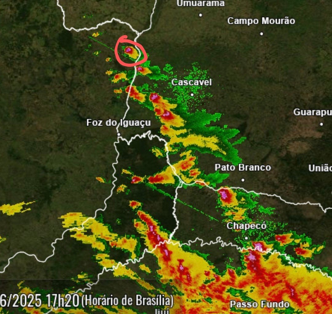 Felipe S Monteiro Posted June 28, 2025 at 11:03 PM Share Posted June 28, 2025 at 11:03 PM Máxima de 28°, dia começou meio nublado, mas de tarde limpou bem. De tarde algumas CBs surgiram no Py e foram visíveis daqui, algumas dssas tempestades atingiram a refletividade máxima do radar. Essa das imagens é essa mais ao norte, circulada em vermelho. Hoje eu tbm consegui pegar os dados do Iapar de uma estação bem próxima daqui nessa última MP. Eu não estava conseguindo acessar pq não conseguia instalar o app do IDR Clima no meu celular nem em um outro que eu tenho aqui, mas consegui em um terceiro. Essa estação fica em uma leve encosta de um topo baixo, a área é rural, mas tem algumas edificações grandes próximas. Dia 24: Dia 25: 17 3 Link to comment Share on other sites More sharing options...