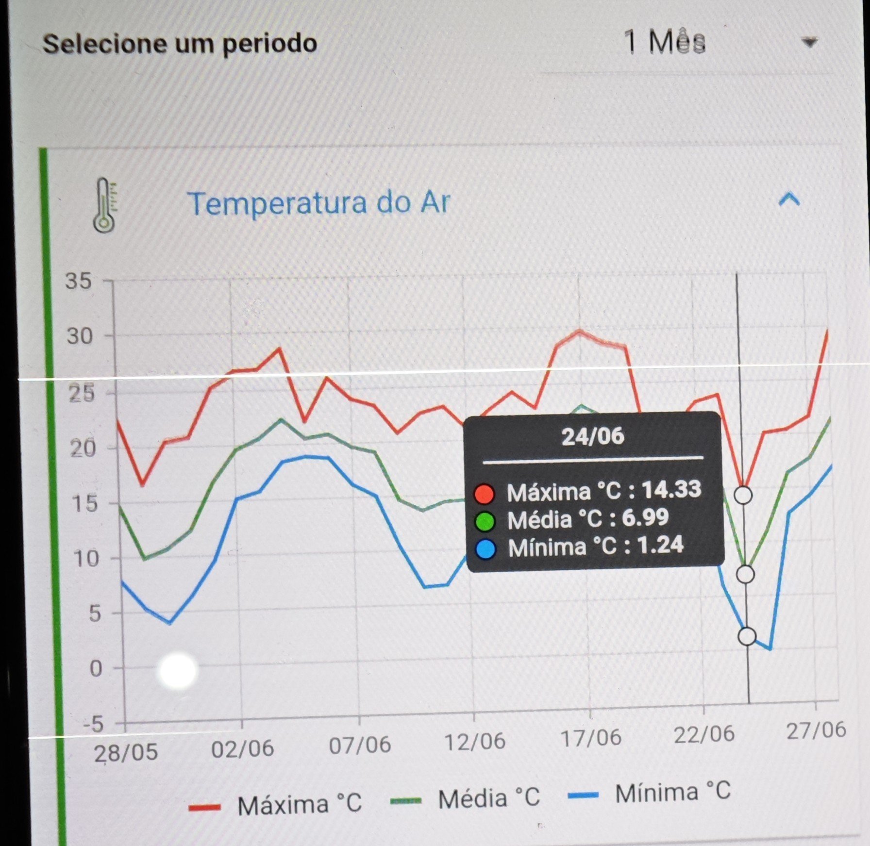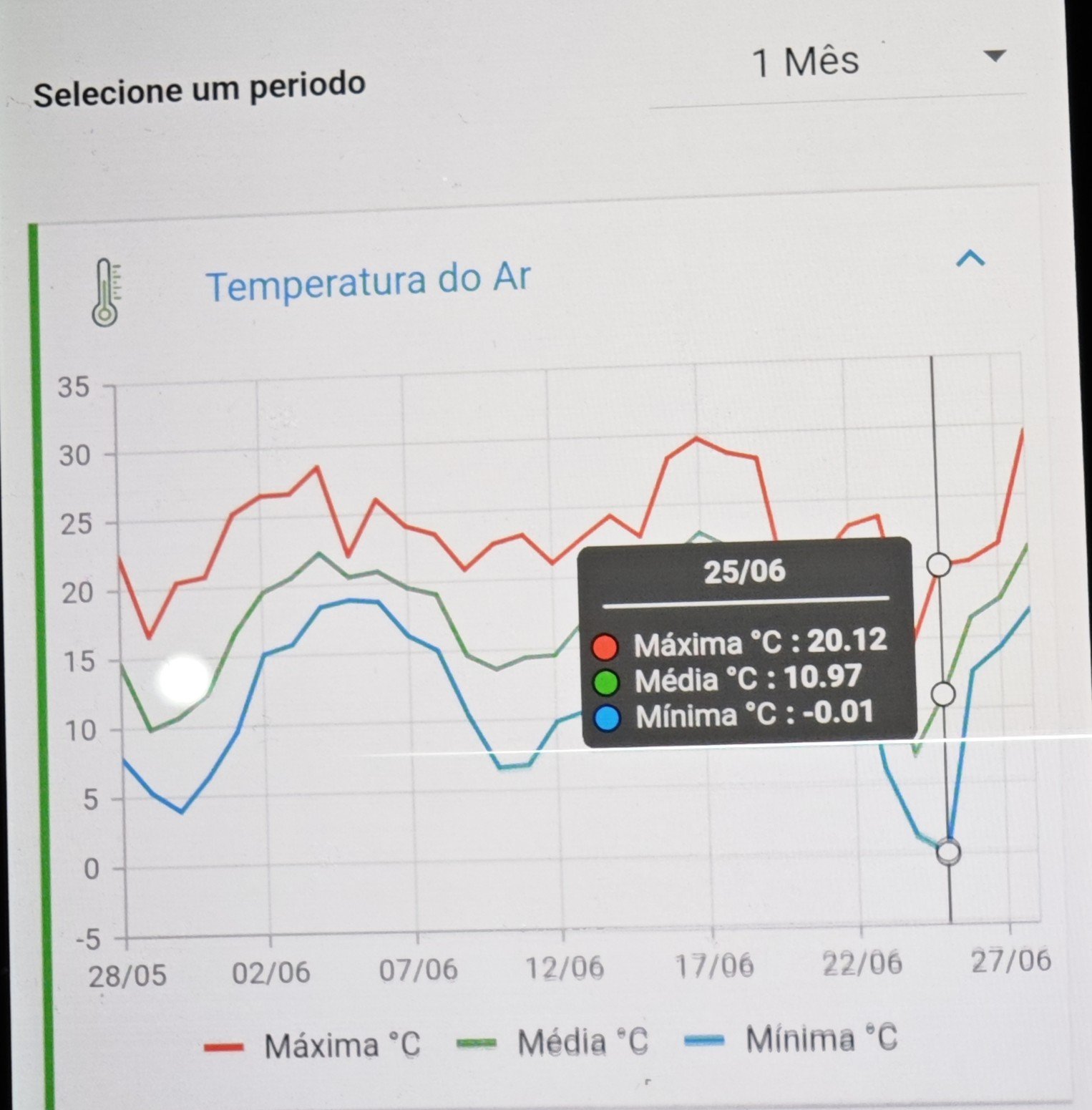 Samihr Hermes Posted June 29, 2025 at 02:59 AM Share Posted June 29, 2025 at 02:59 AM 9.7 C hoje na estação de mato grosso, acho que é a primeira sub-10 marcada nessa nova estação do camarada Rodrigo 19 Link to comment Share on other sites More sharing options...