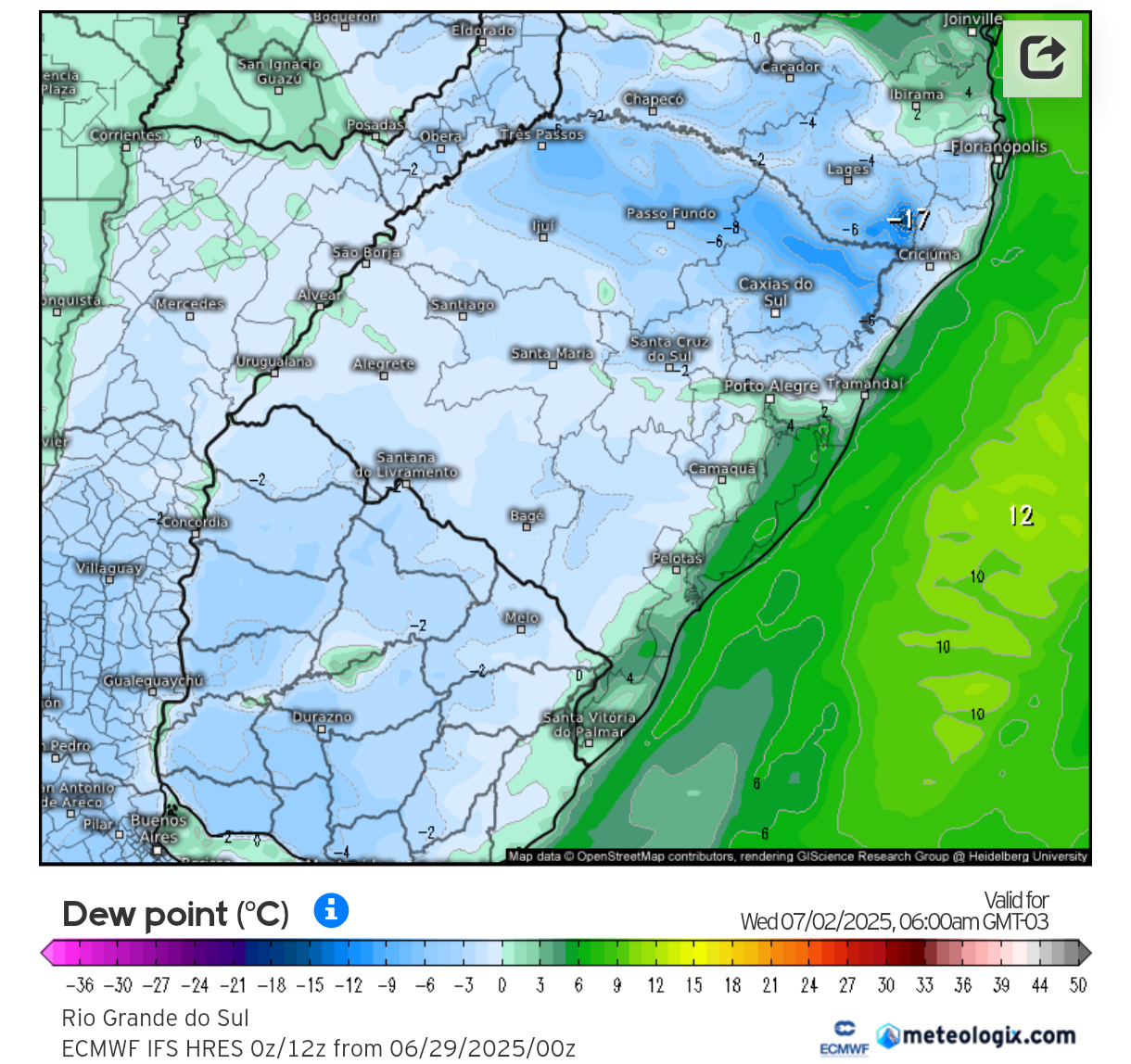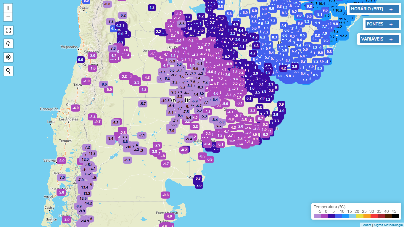 Caio César Posted June 29, 2025 at 01:39 PM Share Posted June 29, 2025 at 01:39 PM Em 29/06/2025 em 09:36, Augusto Göelzer disse: Neste momento estamos presenciando a MP mais forte do centro-sul do continente em muito tempo, eis as mínimas de hoje (vários locais com neve): Para quem é da Argentina, Uruguay, RS e partes de SC se preparem, as mínimas registradas nesse evento em vários lugares demorarão a acontecer novamente. Creio que para SC as mínimas não devem ser inferiores ao último evento que chegou a -10,5°C no Keiser Terra do Gelo. Talvez Pinheiro Machado e a campanha tenha sim a sua mínima do ano. 10 Link to comment Share on other sites More sharing options...