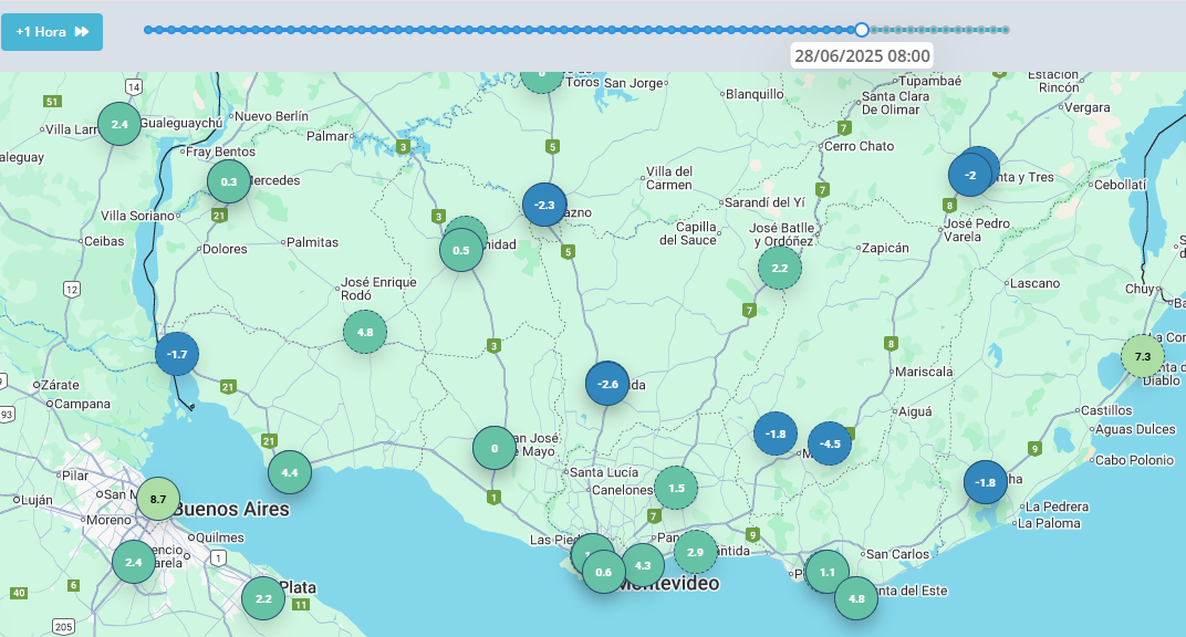 PabloMQL Posted June 28, 2025 at 11:37 PM Share Posted June 28, 2025 at 11:37 PM Buenas noches, hoy renovamos minima en la estacion Prado de Montevideo, O,6°C. Heladas generalizadas en la ciudad: 14 5 Link to comment Share on other sites More sharing options...