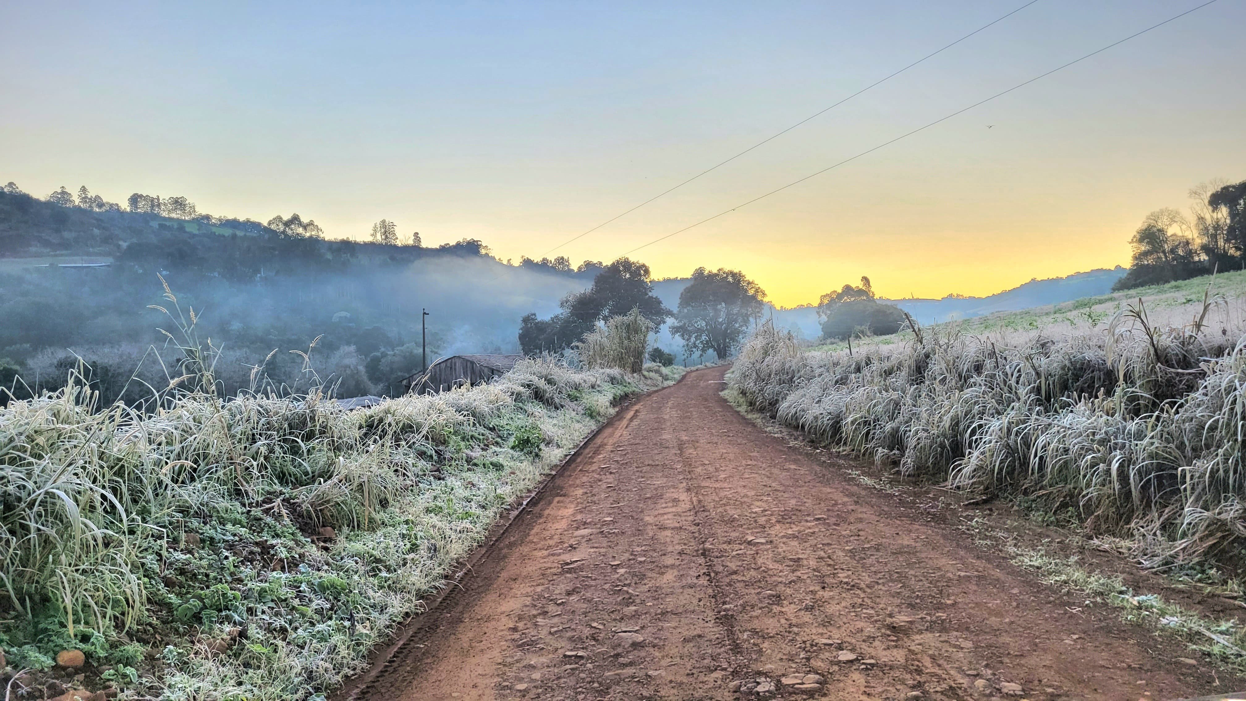 jean10lj Posted July 2, 2025 at 12:00 PM Share Posted July 2, 2025 at 12:00 PM Mínimas em Iporã do Oeste hoje nas estações meteorológicas. Não foi tão relevante em valores, mas o -0,6 no topo foi com uma ventania desgraçada. Moro num topo e saí de casa com tudo balançando e batendo. É por isso que Itapiranga - SC teve recorde, o vento nos topos inibiu a formação do nevoeiro. -1,8 Linha Taquarussu -1,5 Linha Wickert -1,1 Espaço Flor e Ser -0,6 Linha Letras (topo) Hoje saí da minha zona de conforto e fui num vale do município que nunca tinha ido, na Linha Pirapó. Relatos de várias pessoas me falaram que lá é o lugar que mais da geada no município. Cheguei lá e medi -1,8 na beira da estrada rapidinho, mas ainda não tinha estabilizado o incoterm e não era no fundo da baixada na pastagem. No momento que medi -1,8 na beira da estrada lá, estava -1,6 em Taquarussu, o local mais frio com estação no município. Acredito que pra dentro no pasto estava -2,x pelo menos. Realmente por essa medição lá parece ser o lugar mais frio do município! Achado interessante!. Linha Pirapó Esse trecho da estrada é de onde eu tirei a foto logo acima. E estava assim! 19 10 Link to comment Share on other sites More sharing options...