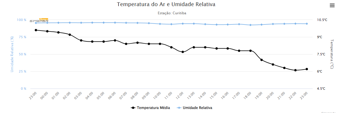 RamirezFZ Posted July 2, 2025 at 02:53 AM Share Posted July 2, 2025 at 02:53 AM (edited) Chuva de moderada intensidade com 6°C Tem um pessoal de SP que veio pra cá a trabalho na minha firma, a opinião é bem dividida, uns adoram, outros estão odiando a semana que escolheram pra vir rsrs Gráfico de temperatura da estação do SIMEPAR está bem interessante, a variação diurna é basicamente inexistente, lembra muito algumas estações no extremo sul do Chile 👇 Edited July 2, 2025 at 02:54 AM by RamirezFZ 20 Link to comment Share on other sites More sharing options...