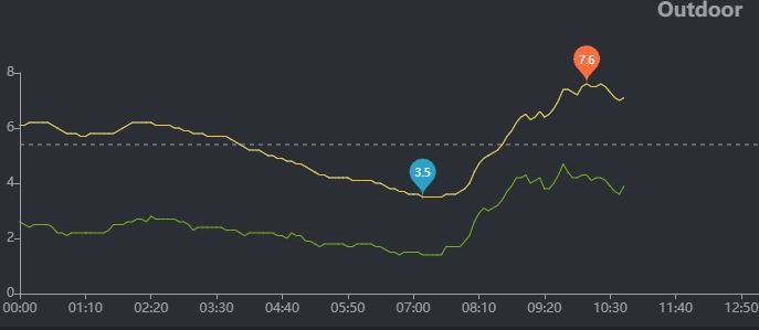 Marcos Posted July 2, 2025 at 01:52 PM Share Posted July 2, 2025 at 01:52 PM (edited) Renovei minha mínima do ano: 3,5° !! Me surpreendi com a queda a partir das 3h, como mostra o gráfico. Isso mostra que o tempo abriu aqui ou pelo menos a variação de nuvens foi bem menor. O INMET ficou em "elevados" 2,9°. Mais um pouco e me igualava, eu que estou numa encosta urbana!!! Mas a MM destruiu a possibilidade de negativar na Grande POA. Frustrou as absolutas da região. Viamão, que estava em 1,8° lá pela meia-noite subiu pra 5° e depois caiu e ficou em +1,3°. Só em Nova Santa Rita negativou, e no detalhe: -0,1°. Gravataí também segurou e ficou em +0,4° e Lomba Grande teve +0,3°. Agora nublou com a nebulosidade remanescente e faz 7,2° com 79%. Vamos aos 12°. Edited July 2, 2025 at 01:53 PM by Marcos 19 Link to comment Share on other sites More sharing options...