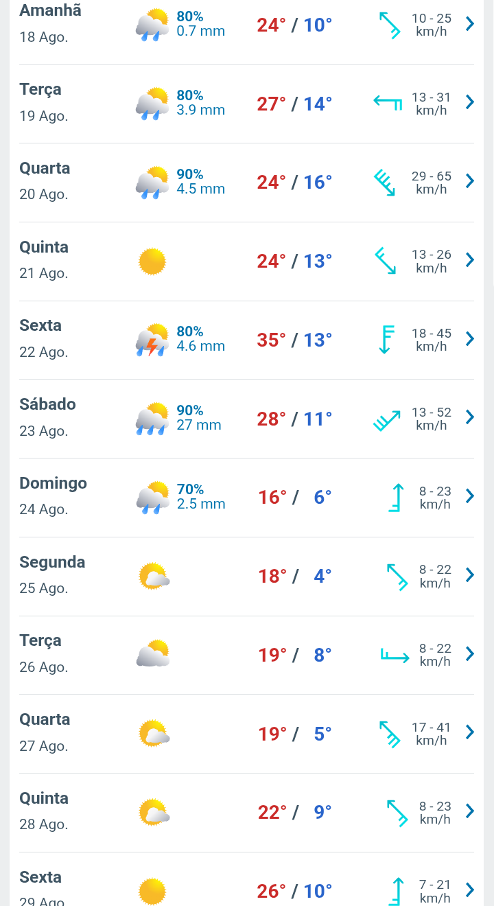 Edison Bocorny Jr Posted August 17, 2025 at 11:11 PM Share Posted August 17, 2025 at 11:11 PM (edited) Domingo de bastante sol, algumas nuvens em alguns momentos e temperatura entre 13.4 e 23.9 graus. Terça e quarta devem ter alguma chuva na madrugada e amanhecer, com vento virando para noroeste quarta feira de manhã e rajadas de até 65 km/h, sol na quinta e máxima de absurdos 35 graus na sexta feira, esfriando bastante posteriormente, mas previsão do meteorivotril daquele jeito surtado, com pré frontal maluco. Edited August 17, 2025 at 11:23 PM by Edison Bocorny Jr 17 Link to comment Share on other sites More sharing options...