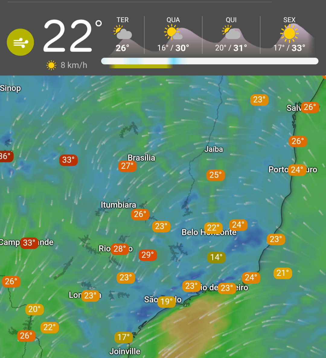 Juzinho Posted August 18, 2025 at 08:32 AM Share Posted August 18, 2025 at 08:32 AM Em 17/08/2025 em 23:49, BrunoSaoPauloCapital disse: Os próximos três dias em São Paulo capital terão aumento de calor, a ponto de chegar aos 30 ºC. Se eu tivesse uma piscina, já começaria a planejar algo... O mais confortável para uma caminhada será amanhã à tarde, com 23 ºC, 24 ºC. Vamos ter 4 dias bem quentes aqui na capital Paulista ...máximas entre 29 e 32 graus. Cuiabá vem visitar a prima mais velha SP hehe . Não estava com nenhuma saudades disso, mas fazer o que? Parece que depois as temperaturas voltam para a casinha de novo . 12 1 Link to comment Share on other sites More sharing options...