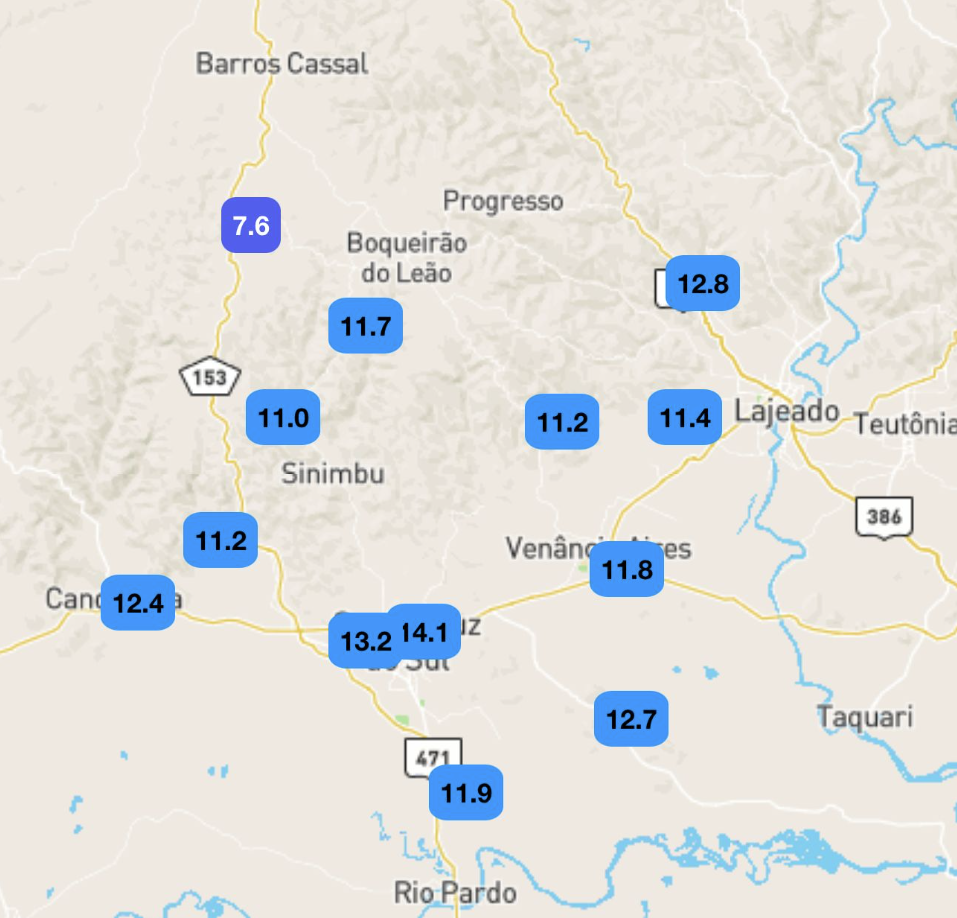 Gabriel Cassol Posted August 18, 2025 at 06:43 PM Share Posted August 18, 2025 at 06:43 PM Hoje foi adicionado os dados da rede de estações meteorológicas da UNISC, são 13 pontos de monitoramento na região dos Vales do Taquari e Rio Pardo com dados a cada 10 minutos. https://sigmameteorologia.com/sigmaweb/stations.php 18 1 Link to comment Share on other sites More sharing options...