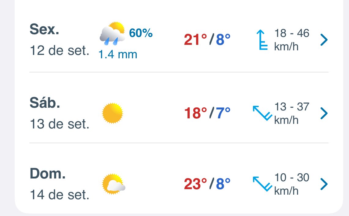 Serrano Posted August 31, 2025 at 03:23 PM Share Posted August 31, 2025 at 03:23 PM Ontem foi um dia aprazível, tarde ensolarada e ventosa. Variação de 7°C/18,7°C em Urubici/VG. Hoje está mais nublado, esparsas aberturas de sol, ventoso e temperatura em 15,3°C ao meio dia. Chegou a garoar mais cedo. Pelo jeito vai se consolidando um período frio e chuvoso a partir de quinta. É... 17 Link to comment Share on other sites More sharing options...