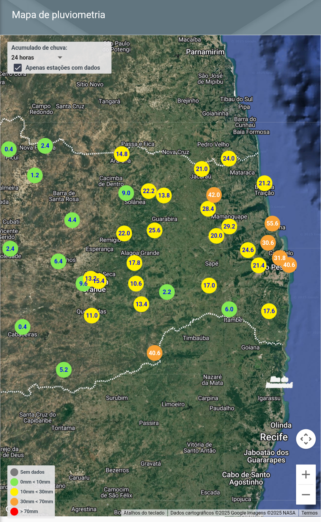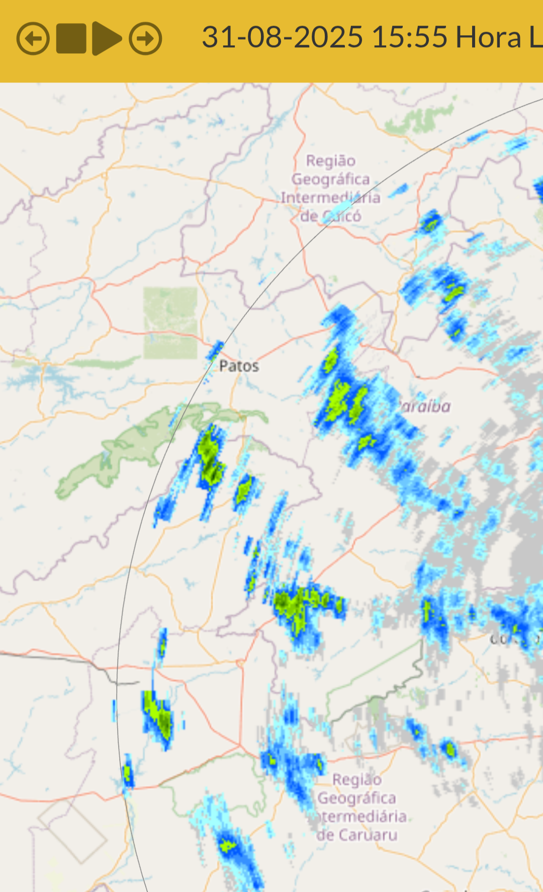 CloudCb Posted August 31, 2025 at 07:18 PM Share Posted August 31, 2025 at 07:18 PM O distúrbio de leste provocou bons volumes de chuva no leste da PB nas últimas 24h. Este episódio está mais atuante no interior, inclusive com algumas pancadas de chuva no Cariri e no extremo leste do Sertão do estado: Não acredito que vá cair alguma chuva por aqui, mas só do céu está mais nublado já está ótimo. 16 Link to comment Share on other sites More sharing options...