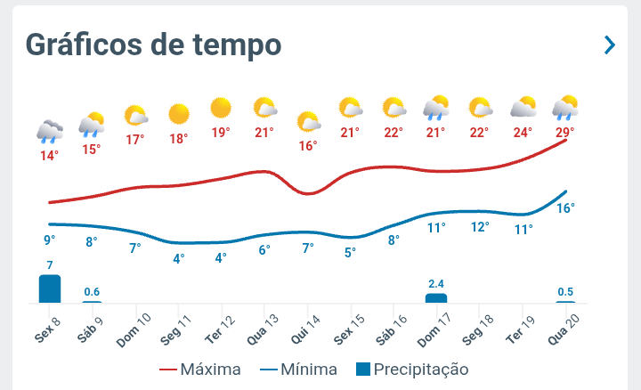 BrunoSaoPauloCapital Posted August 9, 2025 at 12:11 AM Share Posted August 9, 2025 at 12:11 AM Em 08/08/2025 em 20:47, ricardosilva disse: Você iria adorar então morar em Seattle. Sim, eu creio que eu iria adorar morar na região de Seattle, ou em outra cidade próxima, no noroeste do estado de Washington (EUA). Lá é a única região com clima Oceânico que realmente lembra o clima da Irlanda e da Inglaterra, assim como da ilha sul da Nova Zelândia. Verões com máximas de 21 ºC a 24 ºC seriam, para mim, a benção dos deuses. E ainda tem a característica cultural de Seattle, de música Grunge (tipo Nirvana), pessoas introspectivas (aquelas que usam óculos enquanto leem um livro e tomam um café). haha Então, realmente, eu adoraria. -------------------------- No monitoramento, eu tenho temperaturas entre 16 ºC e 17 ºC em muitas PWS da zona oeste de São Paulo capital, e o meu termômetro externo está marcando 19,0 ºC (que eu acredito estar sofrendo com calor de superfície, necessitando urgentemente alteração do local dele). A previsão para os próximos dias mostra dias com mínimas baixas, mas nem tanto. Nada que se aproxime dos 5 ºC (que seria realmente frio), e máximas mantendo o frio leve o dia inteiro. Perfeito para atividades mais intensas ao ar livre: 7 Link to comment Share on other sites More sharing options...