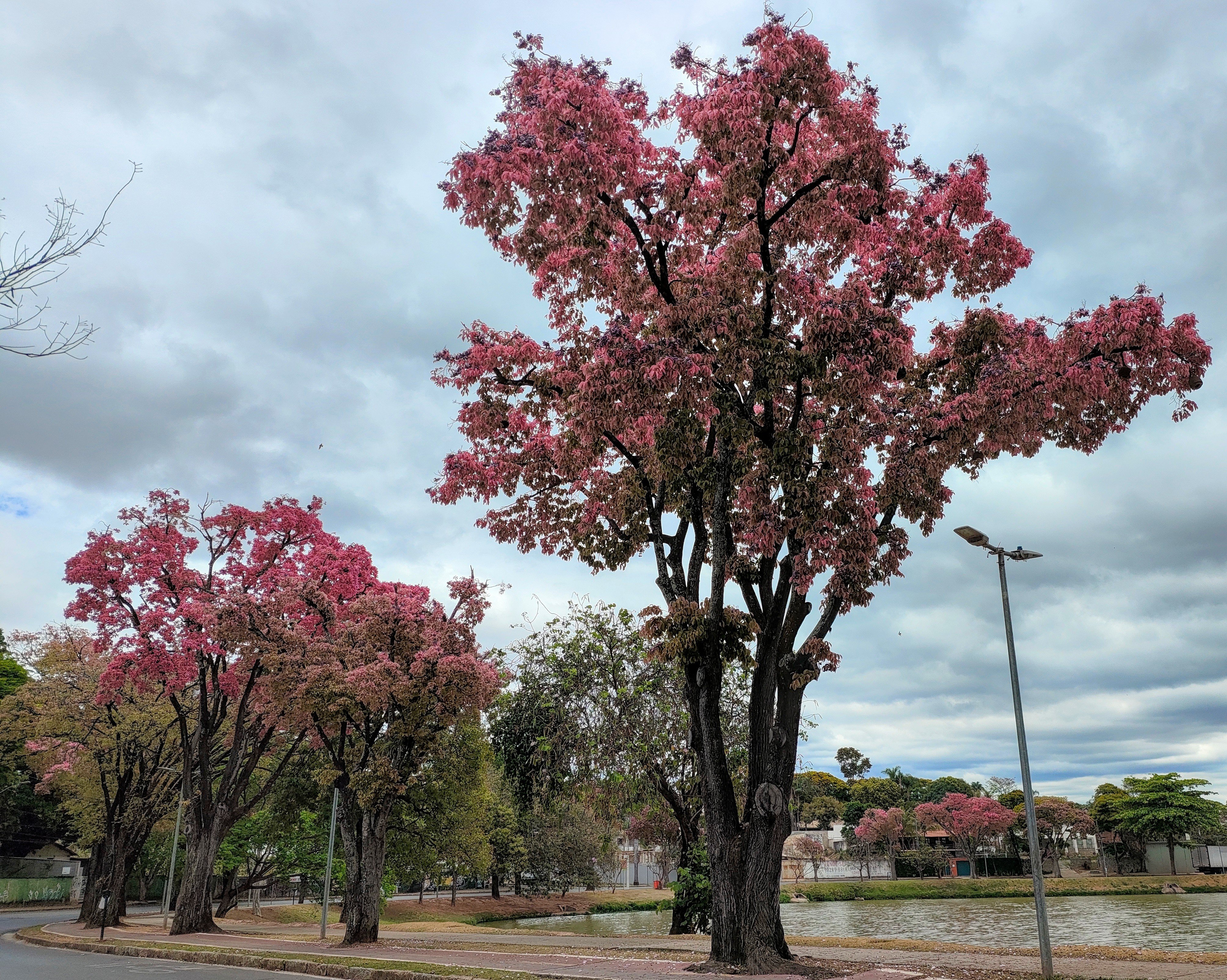 LeoP Posted September 26, 2025 at 01:18 AM Share Posted September 26, 2025 at 01:18 AM (edited) Aqui em BH, aquela previsão de um evento "fora da curva" não se cumpriu e tivemos uma clássica virada dentro dos padrões da cidade, ou seja, sem a severidade de áreas a sul e zona da mata. Ainda assim, um ótimo evento para a época. O dia foi ventoso, nublado a encoberto, com declínio acentuado da temperatura em relação aos dias anteriores. As máximas chegaram a 25°C a norte (onde ocorreram algumas aberturas de sol) e 23°C na região central, valores cerca de 10°C inferiores ao registrado na segunda-feira. O céu cinzento contrastou com a folhagem rosada primaveril das sapucaias: Agora a noite o tempo até abriu e faz frio, como se fosse inverno. As temperaturas estão entre 16 e 13°C, as mínimas do dia, junto com rajadas de vento constantes. Edited September 26, 2025 at 01:24 AM by LeoP 19 Link to comment Share on other sites More sharing options...
