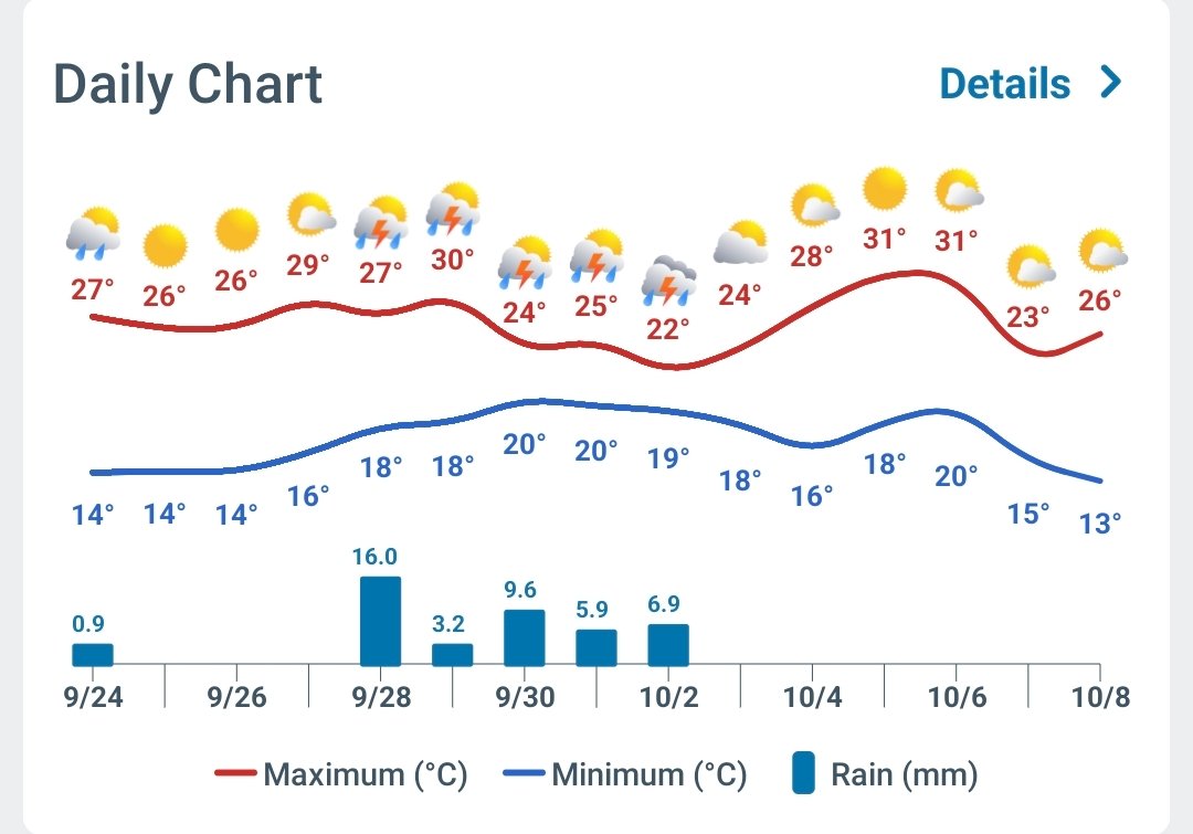 Edison Bocorny Jr Posted September 25, 2025 at 12:40 AM Share Posted September 25, 2025 at 12:40 AM Mais outro dia de primavera ensolarado a parcialmente encoberto, com variação de 11.5 e 23.0 graus. Agora tenho 13.5 graus, não devendo passar dos 21 graus amanhã e 8 de minima sexta feira, com previsão de chuva sábado a noite. 14 Link to comment Share on other sites More sharing options...