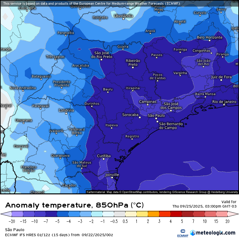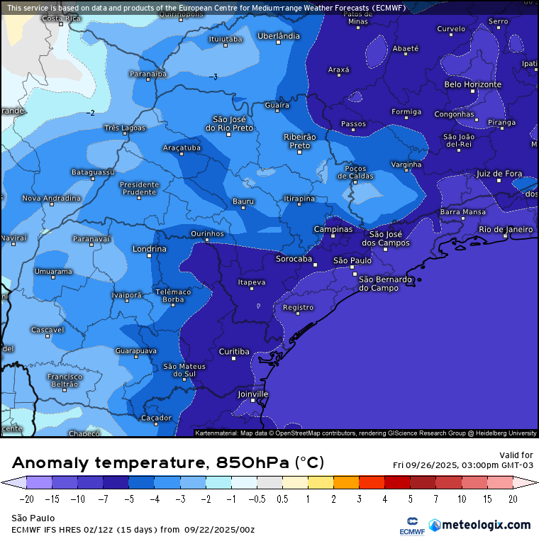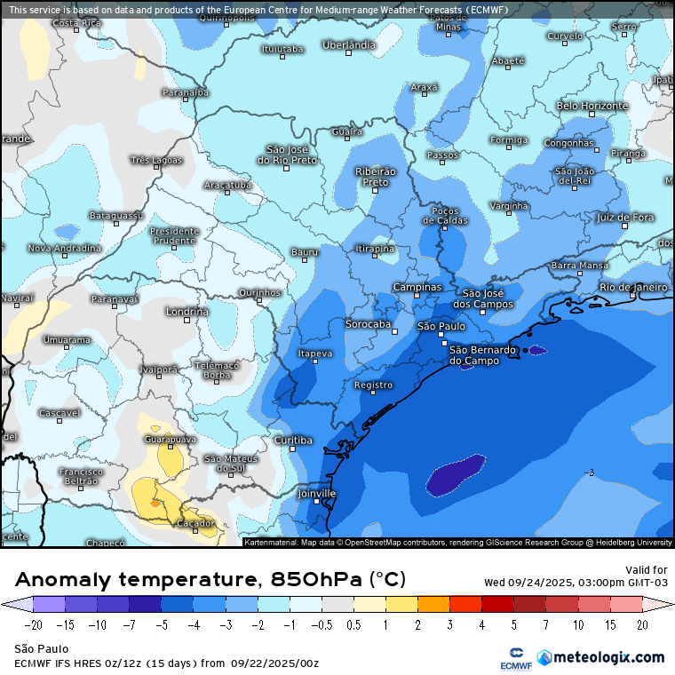 Renan Posted September 25, 2025 at 01:57 AM Share Posted September 25, 2025 at 01:57 AM Em 24/09/2025 em 22:36, Daniel85 disse: Amanhã teremos reforço do ar frio entrando no estado de SP. Essa MP que ingressou ontem tem uma intensidade mais fraca, mas esse reforço terá uma intensidade mais forte, o que fará com que as máximas na capital paulista fiquem em 14/15 graus. Na sexta, deve começar a perder força (no interior, já em áreas próximas do litoral se manterá e só no sábado que diminui) Tarde de hoje Tarde de amanhã Tarde de sexta Curioso com a temperatura máxima de amanhã por aqui. Tem boas chances da menor máxima do ano ocorrer agora ! Isso não seria bizarro….ja tivemos outros anos em que a menor máxima do ano se deu na primavera ! 21 Link to comment Share on other sites More sharing options...