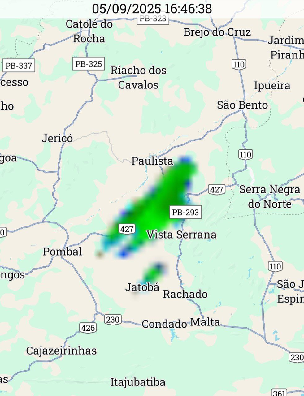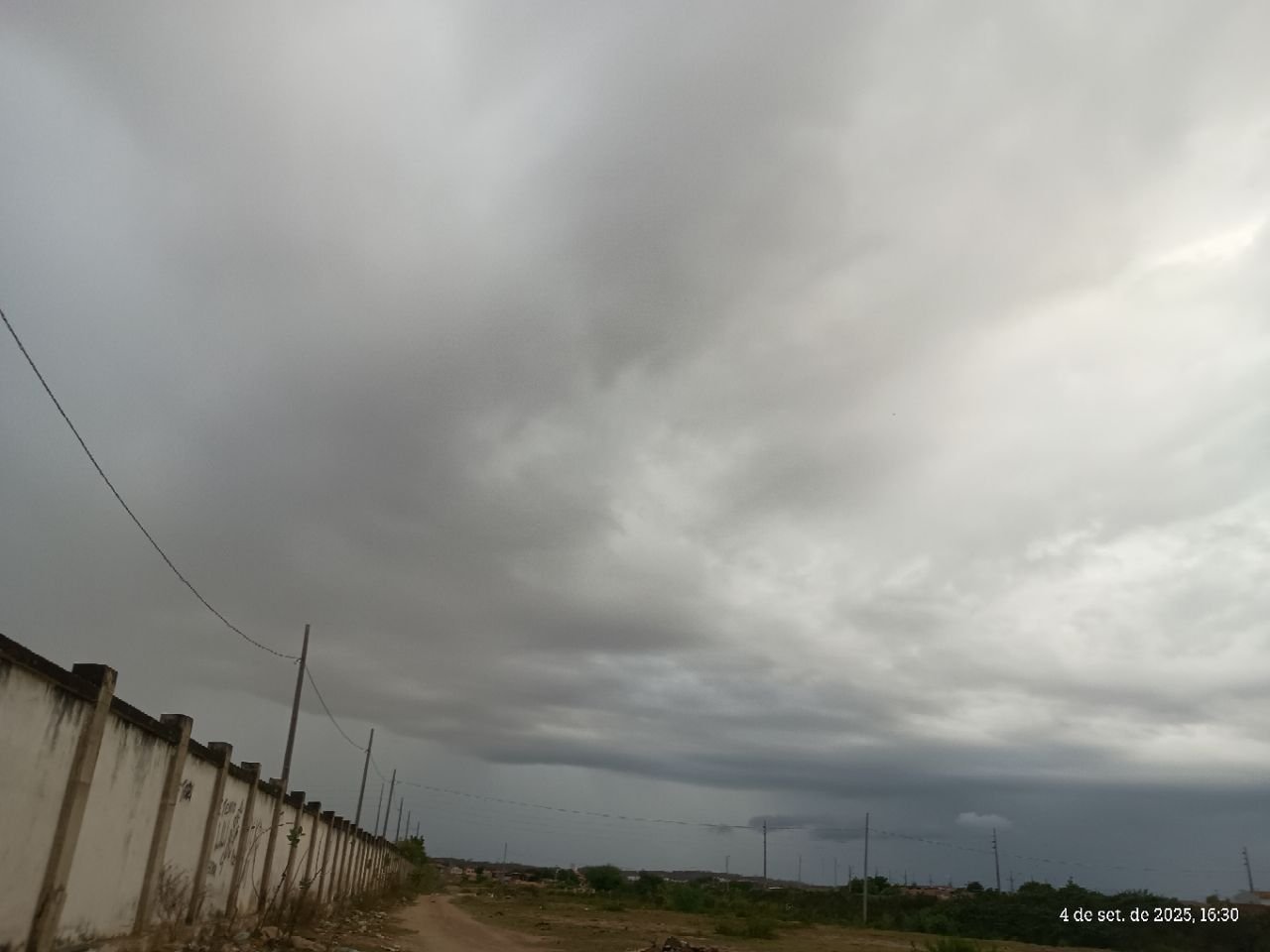 CloudCb Posted September 6, 2025 at 02:18 PM Share Posted September 6, 2025 at 02:18 PM Na madrugada de ontem, sexta, voltou a chover em Pombal, no Sertão da PB. Foram 2,1 mm. Somando com os 1,3 mm caídos no final da tarde da quinta, dá 3,4 mm. Já ontem, sexta, foi um dia com predomínio de muita nebulosidade. A manhã toda foi encoberta, somente após 12h que o Sol apareceu um pouco. Depois das 13h20, algumas nuvens se aproximaram e provocaram alguns chuviscos. Depois das 16h, um núcleo se formou ao meu leste e passou de raspão aqui: Tive somente uma chuvinha fraca. De noite voltou a chover, às 20h30, foi bem rápida mas conseguiu escorrer bem. Ao todo foram 2,2 mm. Com isso agora tenho 7,2 mm em Setembro (ou 10 vezes a média mensal). A máxima na estação automática foi de 30,2°C no início da tarde, uma anomalia negativa de 5°C. 19 Link to comment Share on other sites More sharing options...