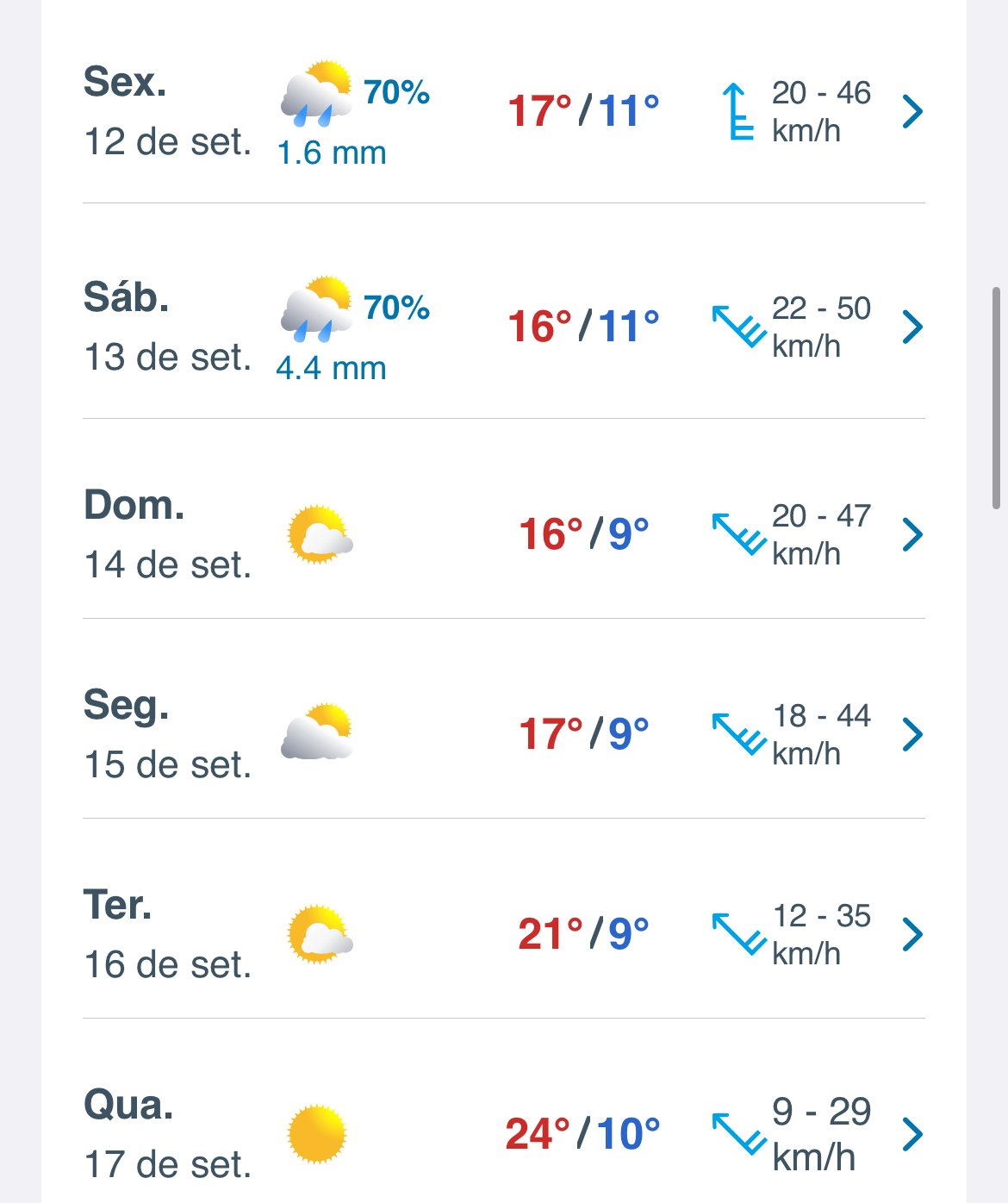 atiliogobbo Posted September 5, 2025 at 02:37 PM Share Posted September 5, 2025 at 02:37 PM Desde que comecei a acompanhar previsão do tempo não me recordo de um prognóstico parecido com esse para Taubaté - SP em setembro, e chama a atenção que já vem se mantendo a alguns dias. 14 5 Link to comment Share on other sites More sharing options...