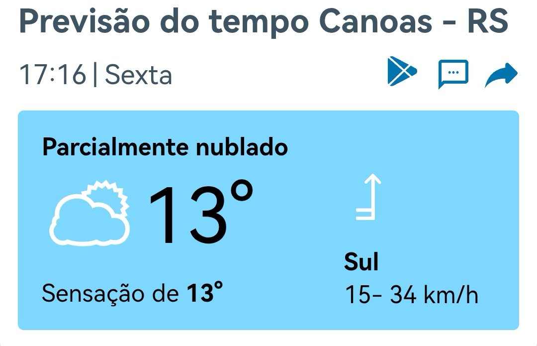 Eclipse POA Posted September 5, 2025 at 01:59 PM Share Posted September 5, 2025 at 01:59 PM (edited) 13 graus em Canoas, e provavelmente não passará disso hoje excelente tarde mostrando que o inverno não quer desapegar Edited September 5, 2025 at 01:59 PM by Eclipse POA 21 Link to comment Share on other sites More sharing options...