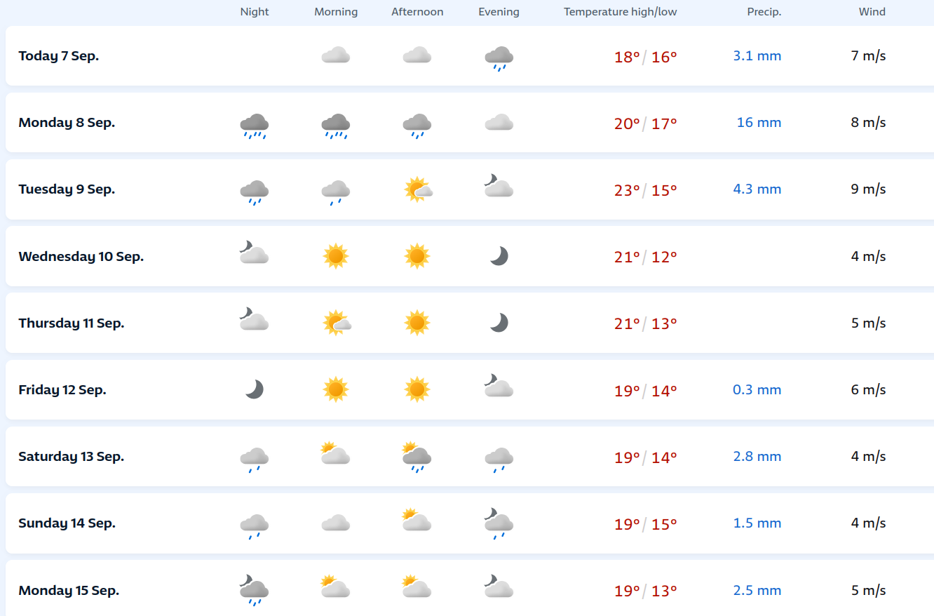 Edison Bocorny Jr Posted September 7, 2025 at 11:35 PM Share Posted September 7, 2025 at 11:35 PM O domingo teve variação entre 10.5 e 22.1 graus, bem estilo primavera setembro, bastante sol e uma brisa. Amanhã e terça feira no período da manhã, a chuva retorna em volume de até 50 mm, com declínio na quarta feira em diante, com mínimas de até 8 graus e máximas de 20 e poucos graus. Setembro frio de manhã e agradável a tarde na primeira quinzena, pelo menos. 15 1 Link to comment Share on other sites More sharing options...
