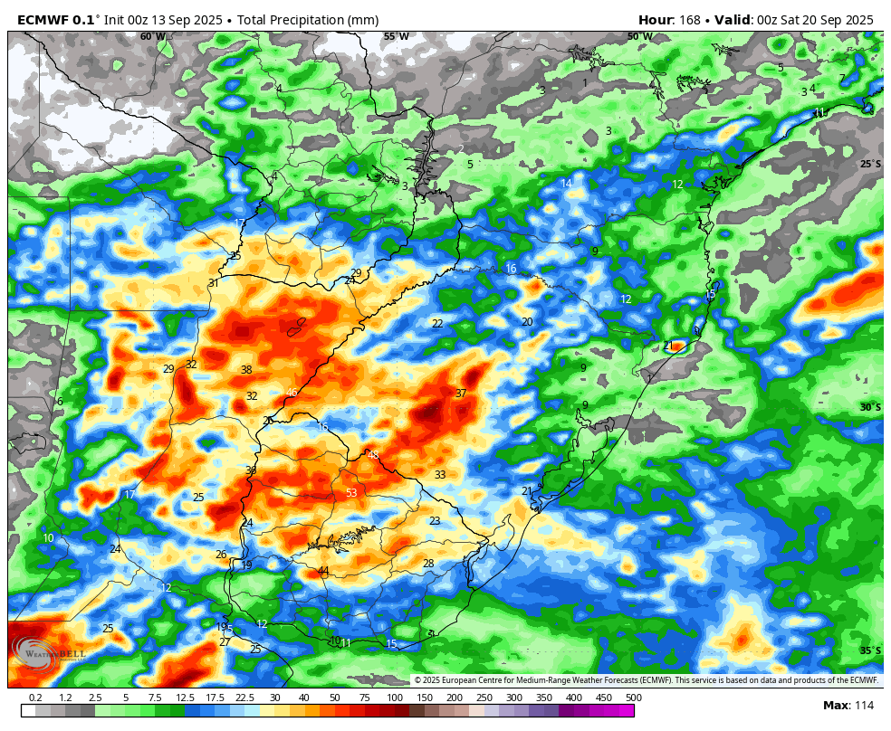 Edison Bocorny Jr Posted September 13, 2025 at 10:58 PM Share Posted September 13, 2025 at 10:58 PM (edited) E mais dias ensolarados de primeira metade de primavera, frio de 9.2 graus ao amanhecer e 24.5 de máxima a tarde. A chuva deve retornar na segunda feira e de quinta em diante, com possível mp forte para segunda quinzena de setembro pelo dia 23, distante ainda mas pelo euro projeções de 6/7 graus de mínima. Edited September 13, 2025 at 10:59 PM by Edison Bocorny Jr 16 1 Link to comment Share on other sites More sharing options...